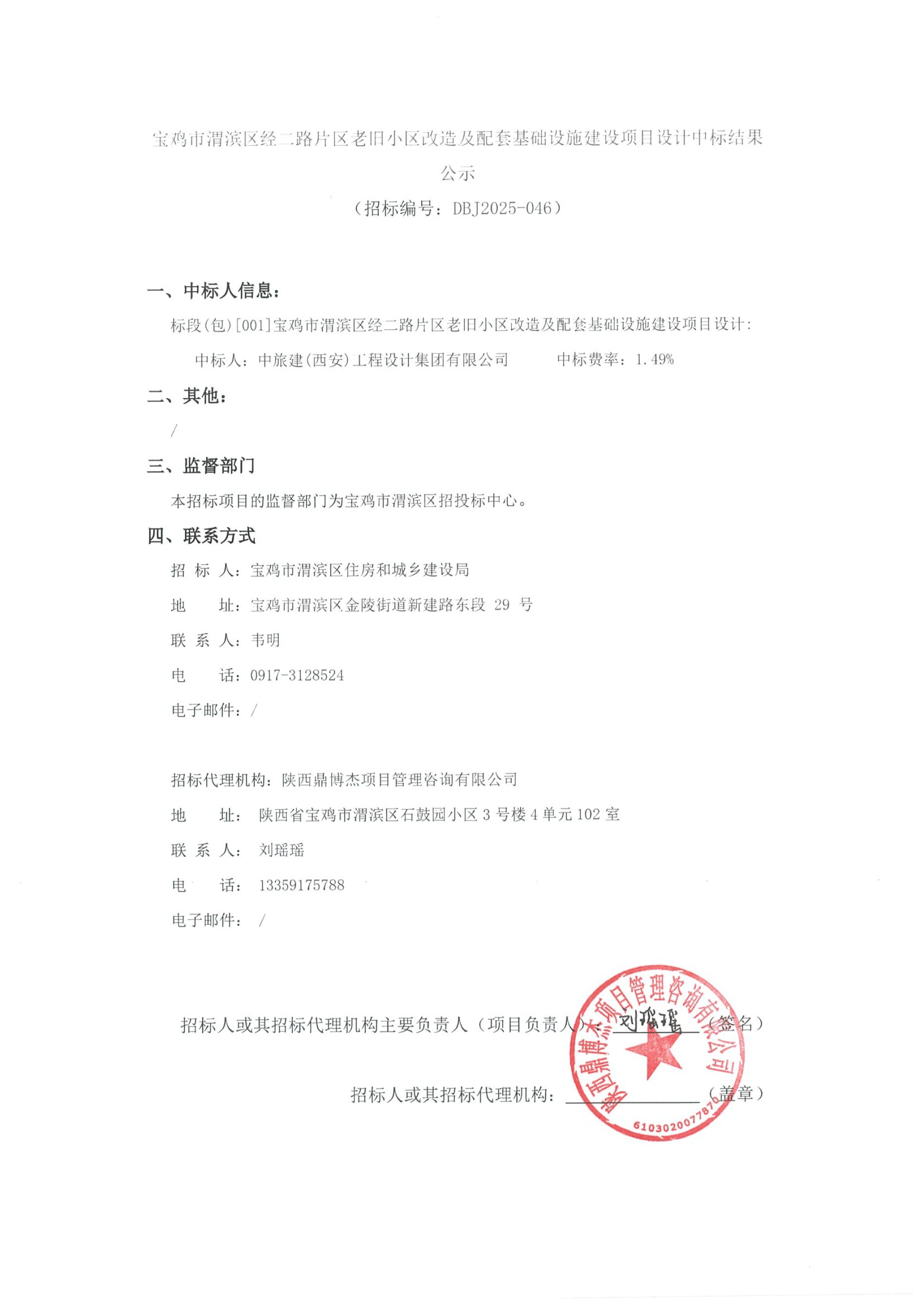 宝鸡市渭滨区经二路片区老旧小区改造及配套基础设施建设项目设计中标结果公示