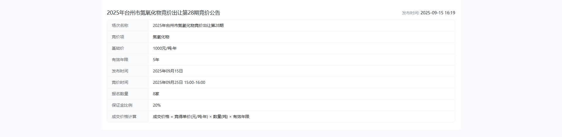 2025年台州市氮氧化物竞价出让第28期竞价公告交易公告