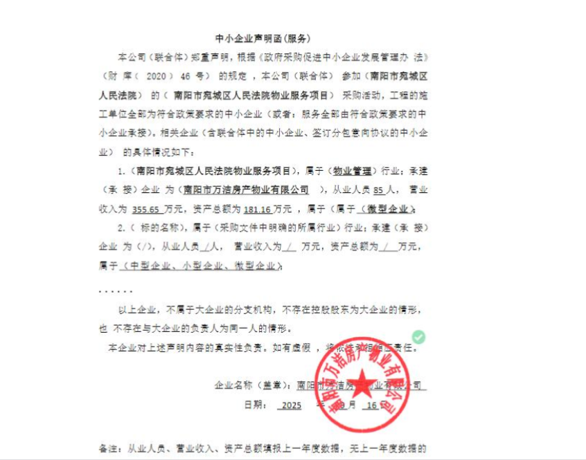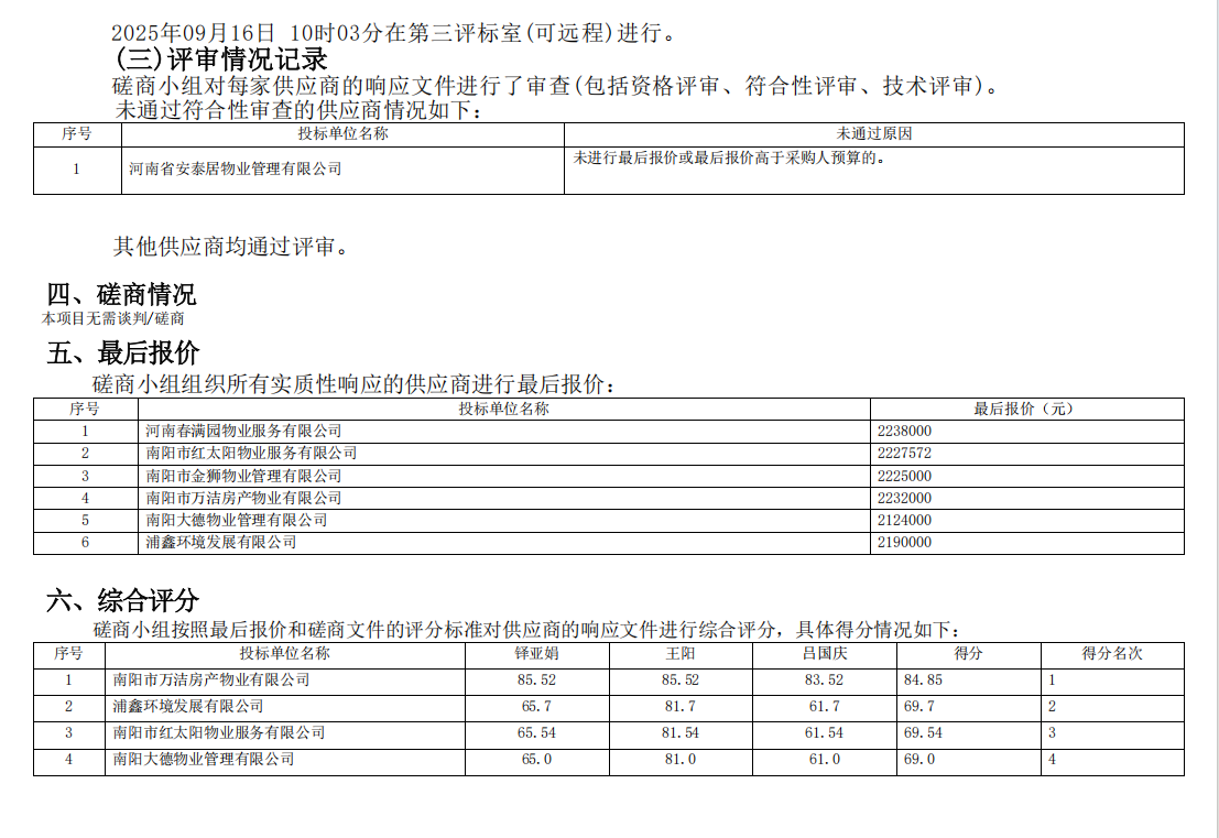 南阳市宛城区人民法院物业服务项目*成交公告