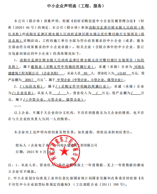 洛阳市孟津区横水镇人民政府孟津区横水镇元庄村整村路灯安装项目-成交公告