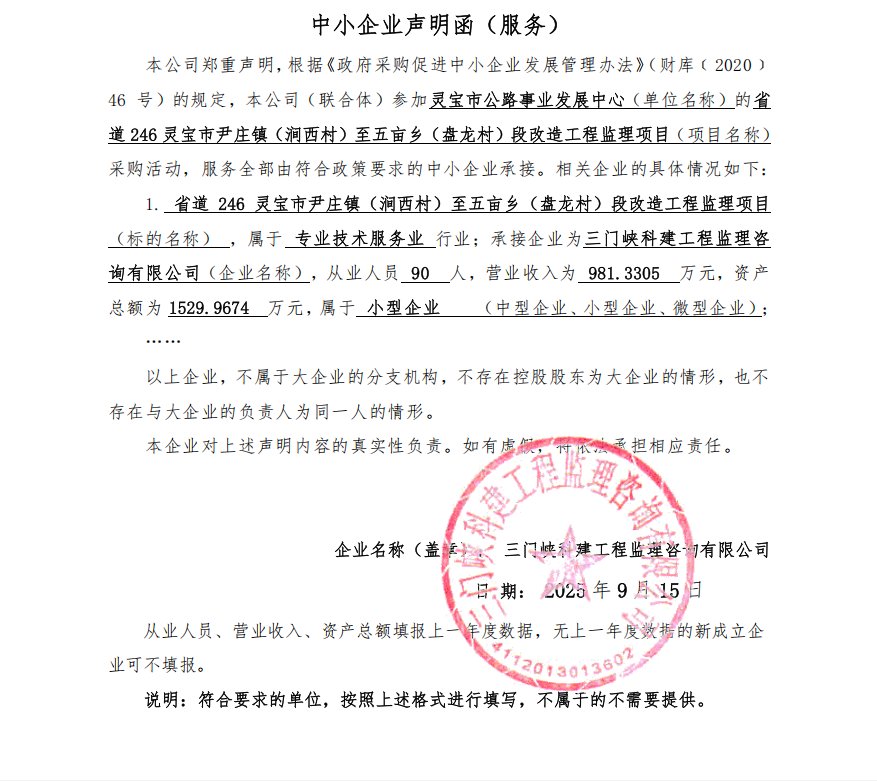 灵宝市公路事业发展中心省道246灵宝市尹庄镇(涧西村)至五亩乡(盘龙村)段改造工程监理项目-成交公告