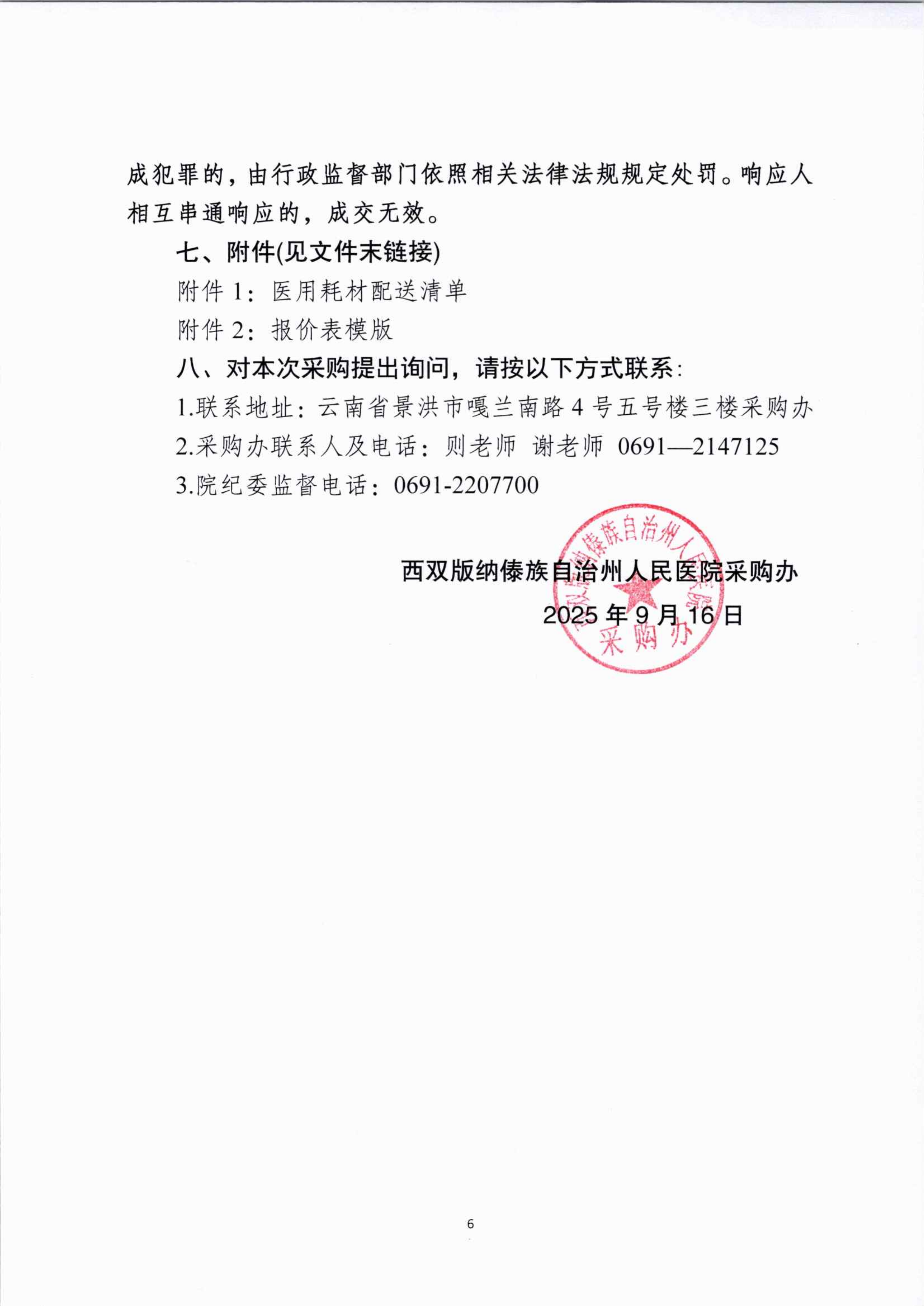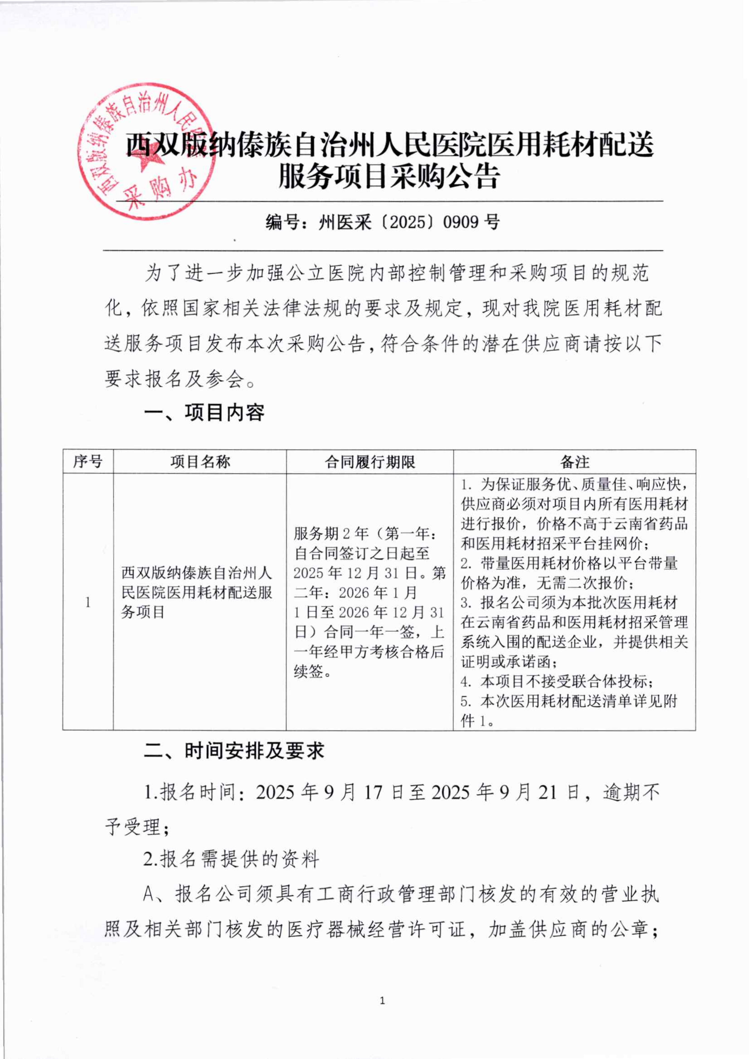 西双版纳傣族自治州人民医院医用耗材配送服务项目采购公告