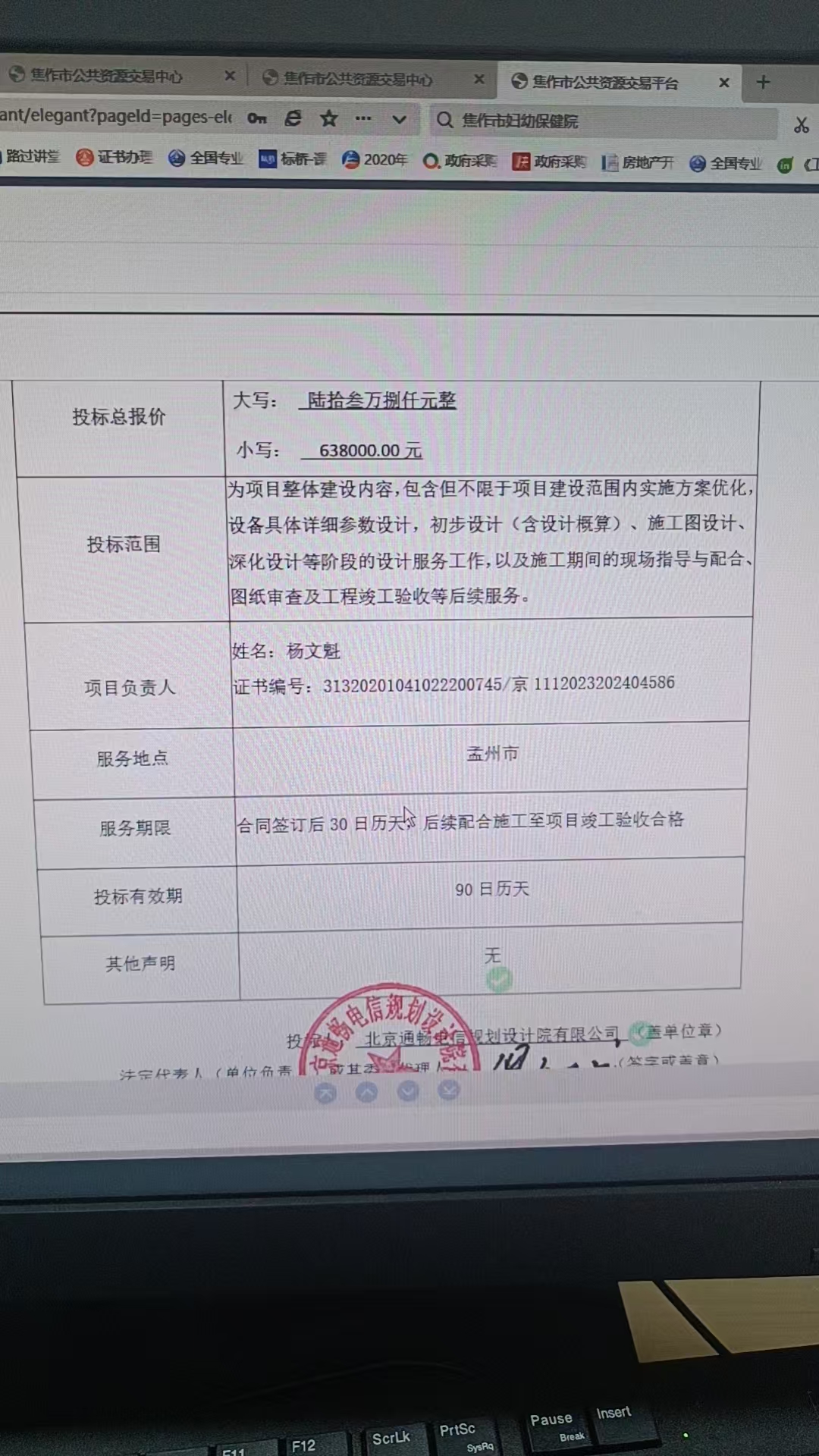 河南/焦作 中标结果