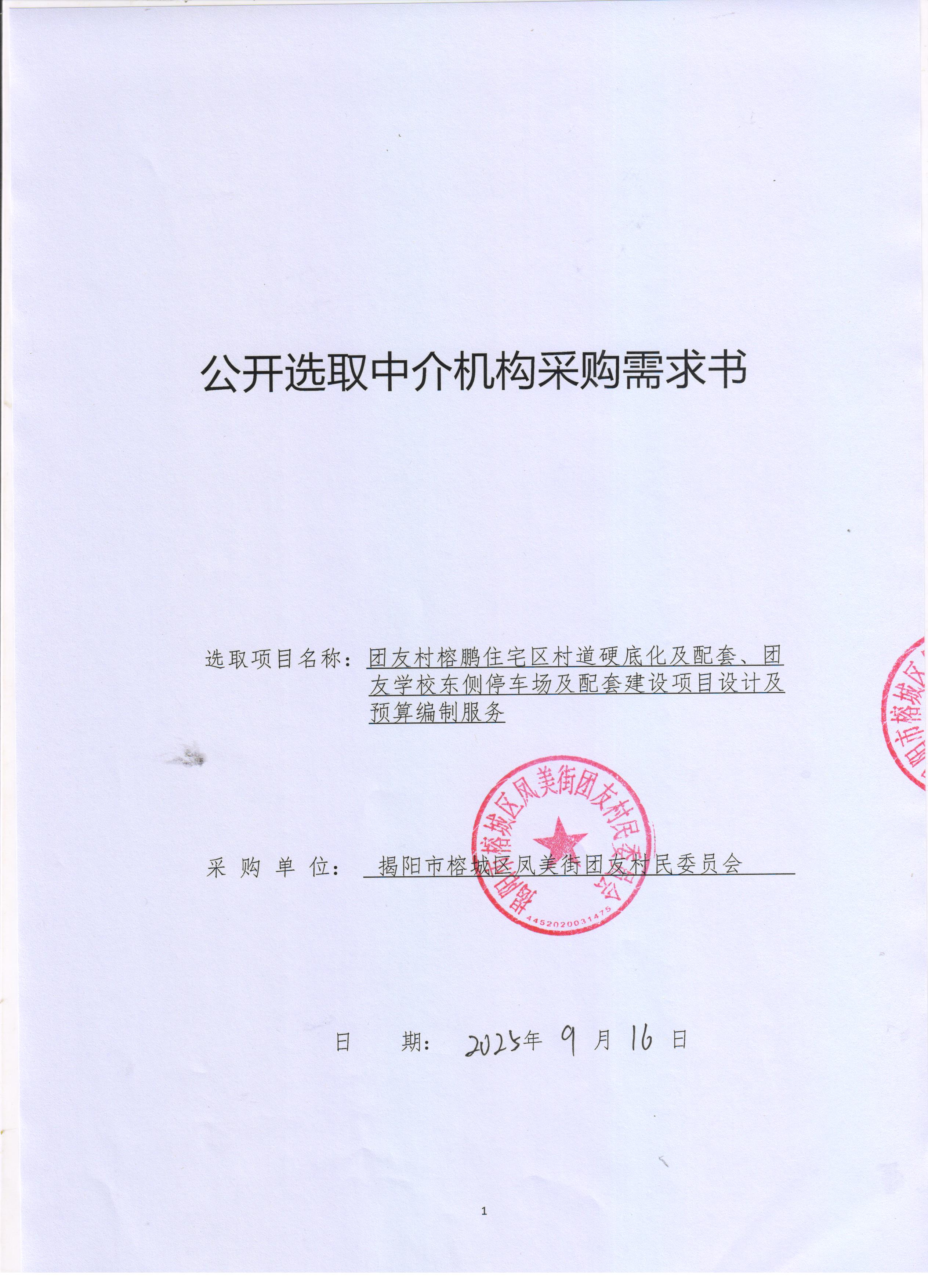 团友村榕鹏住宅区村道硬底化及配套、团友学校东侧停车场及配套建设项目设计及预算编制服务采购公告