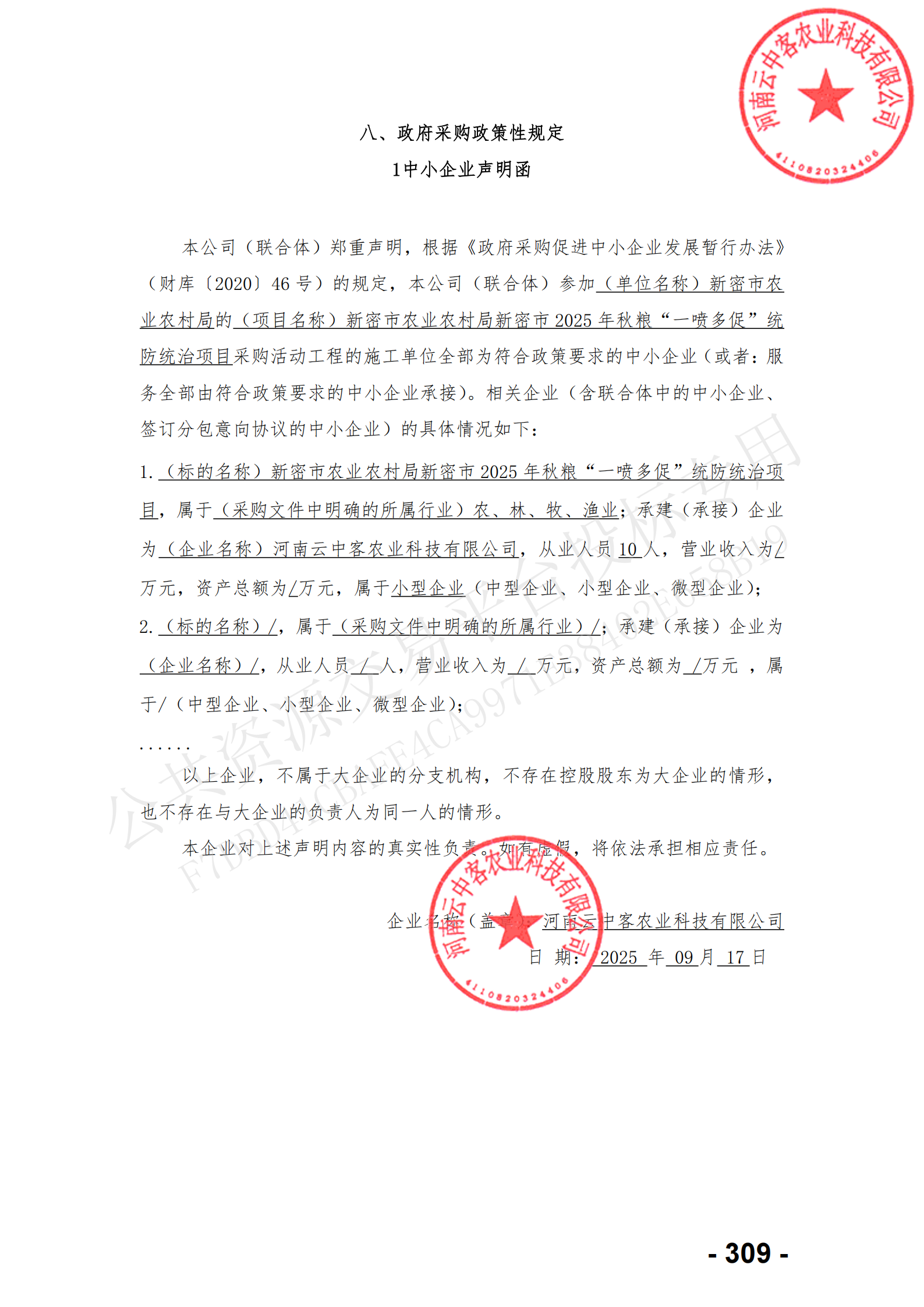 新密市农业农村局新密市2025年秋粮“一喷多促”统防统治项目-成交公告