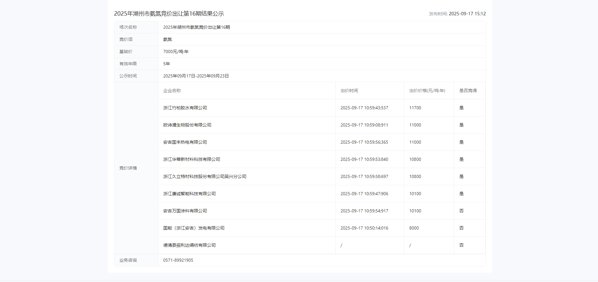 竞价出让第16期结果公示