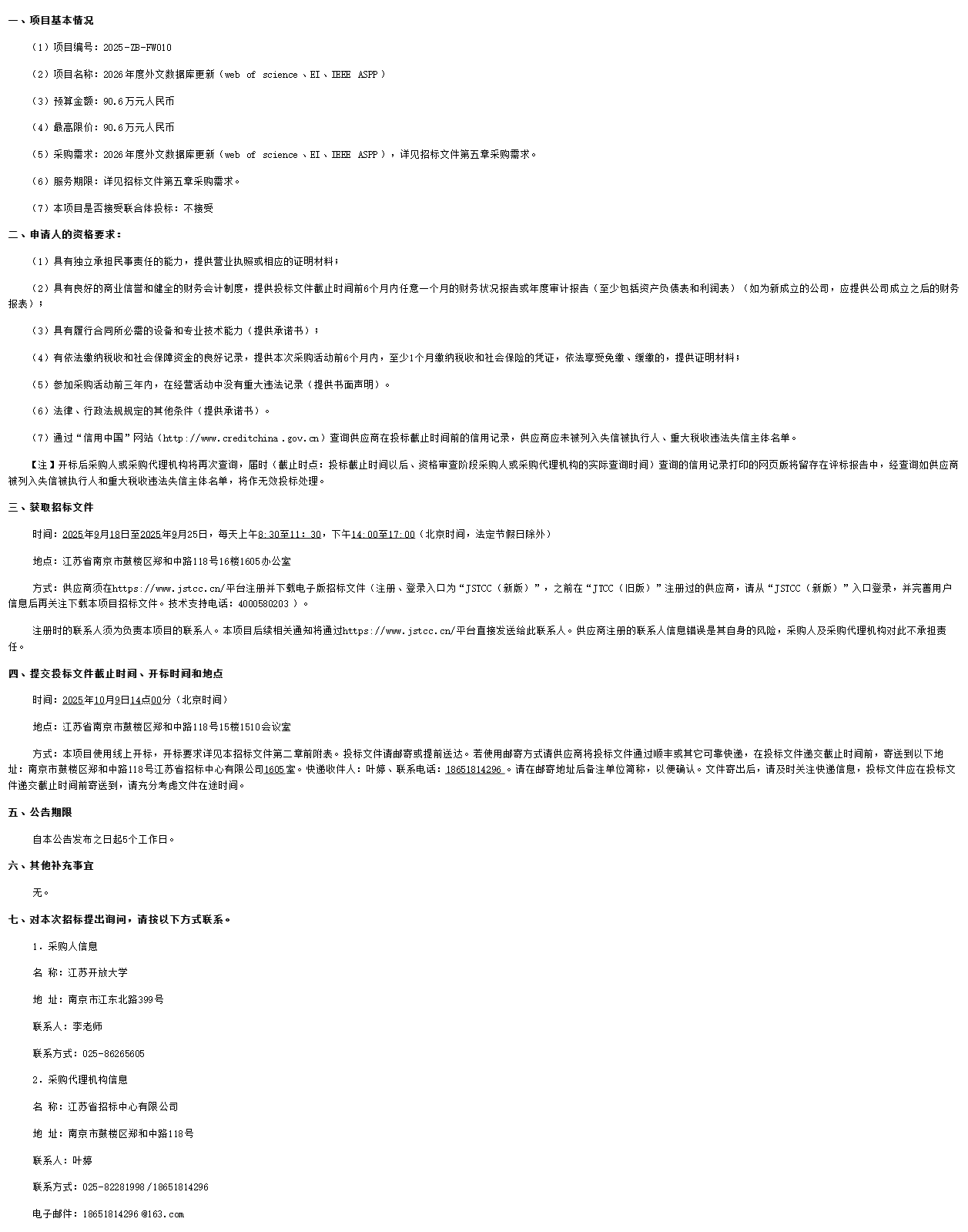 ****年度外文数据库更新(*** ** *******、**、**** ****)招标公告