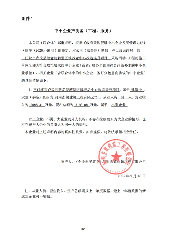 | *、采购项目名称:三门峡市卢氏县敬老院转型区域养老中心改造提升项目 | |||||||||||||||||||||||||||||||