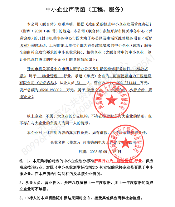 开封市机关事务中心市四大班子办公区及生活区维修服务项目*中标公告