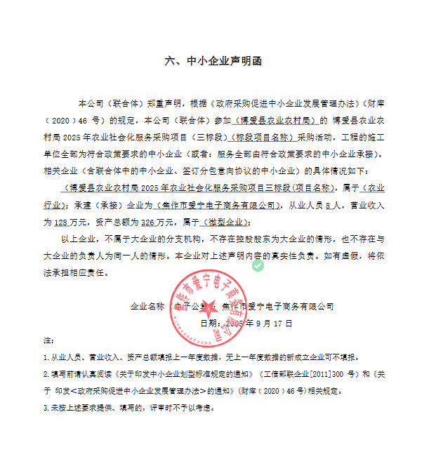 博爱县农业农村局2025年农业社会化服务采购项目-中标公告