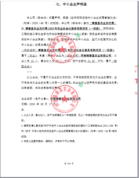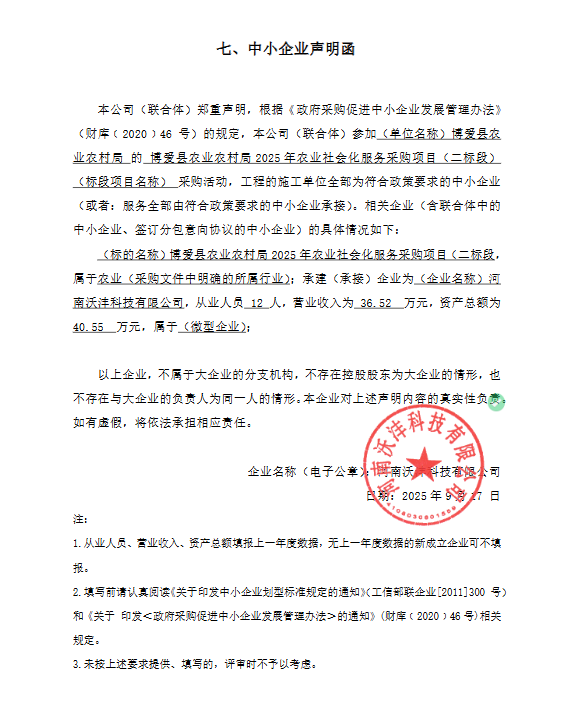 博爱县农业农村局2025年农业社会化服务采购项目-中标公告