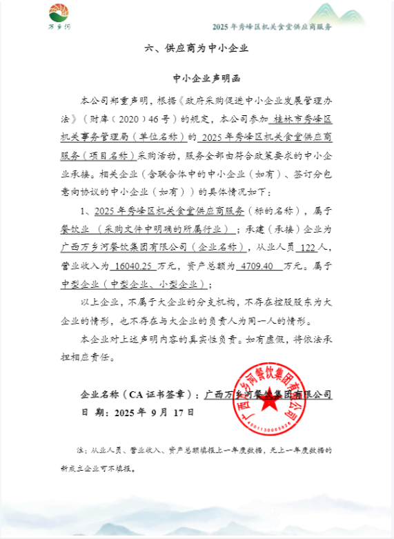 *、中标单位的评审总得分:广西万乡河餐饮集团有限公司 总得分**.**分。