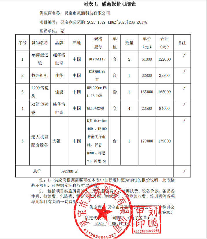 2025年中央财政河南黄河湿地灵宝段国家级自然保护区监测设备购置项目-成交公告