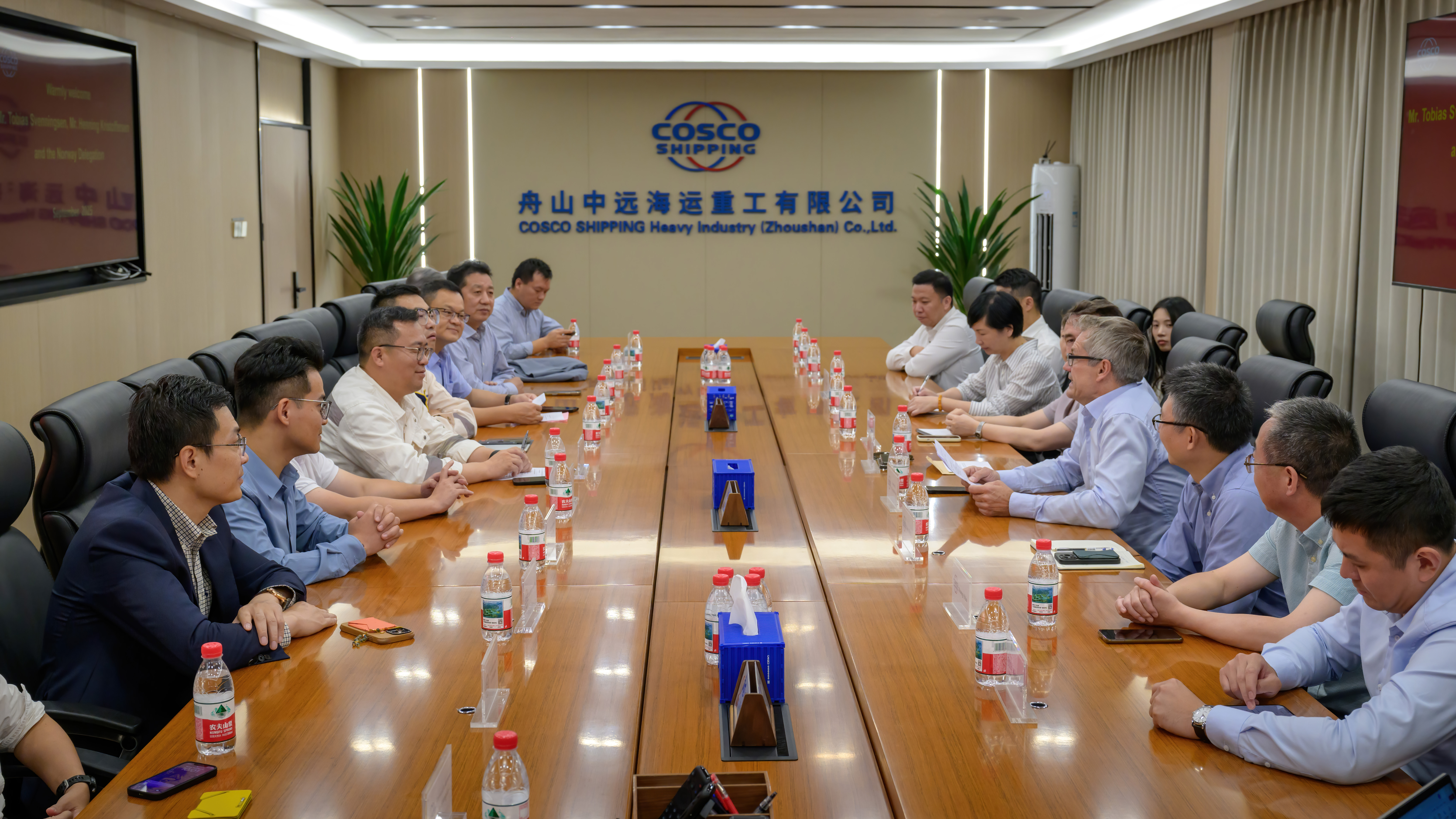 *月**日,总领事宋韬(*******.***********)一行访问舟山中远海运重工有限公司,双方围绕中挪船舶修造领域合作展开深入交流。会上,各挪威企业代表分别就其主营业务、技术优势、项目案例作了详细介绍,并对未来扩大合作领域、提升合作层次表示了强烈期待。