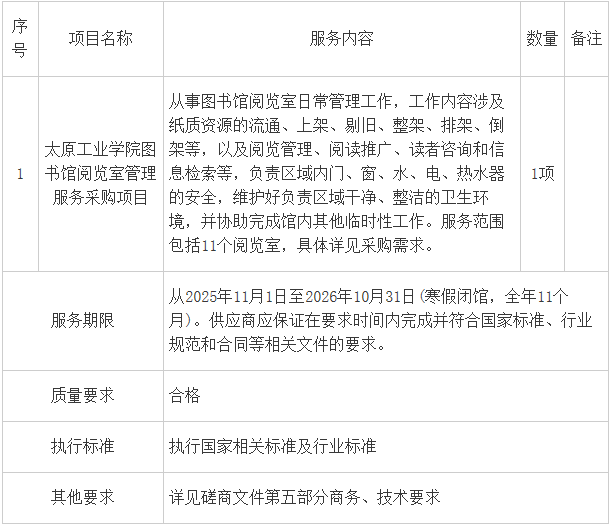 项目名称:太原工业学院图书馆阅览室管理服务采购项目