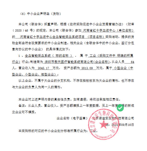 河南省红十字血液中心全血智能采血系统项目*中标公告