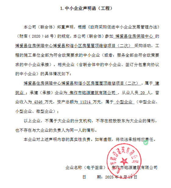 | *、采购项目名称:博爱县住房保障中心博爱县和谐小区房屋屋顶维修项目 | |||||||||||||||||||||||||||||||