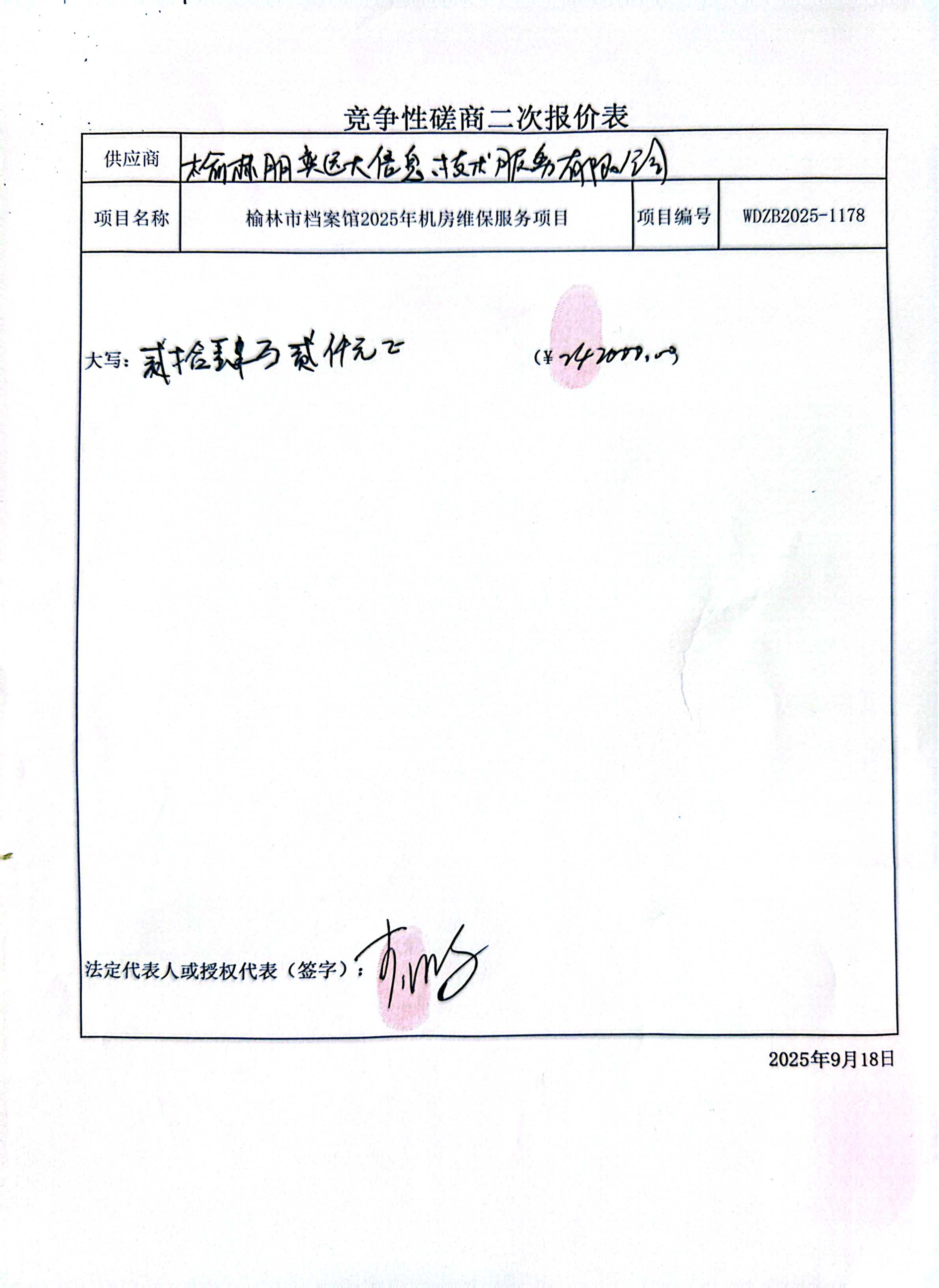 榆林市档案馆2025年机房维保服务项目中标(成交)结果公告