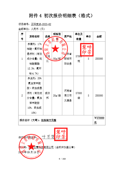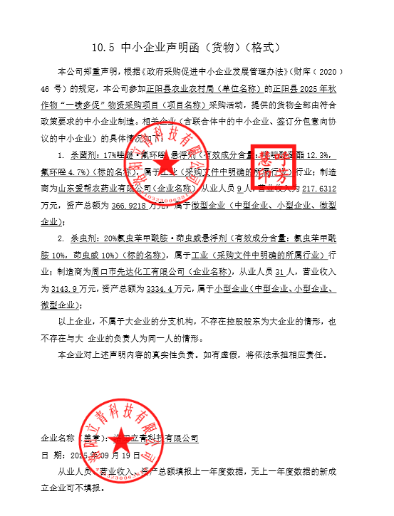 正阳县农业农村局正阳县2025年秋作物“一喷多促”物资采购项目-成交公告