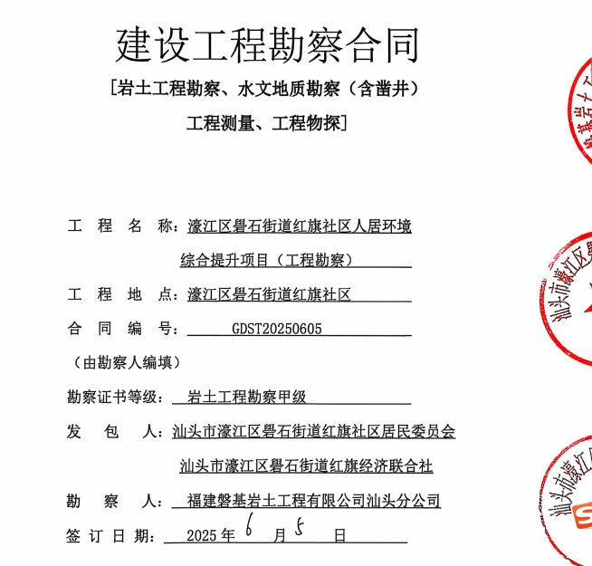 濠江区礐石街道红旗社区人居环境综合提升项目(工程勘察)合同公开