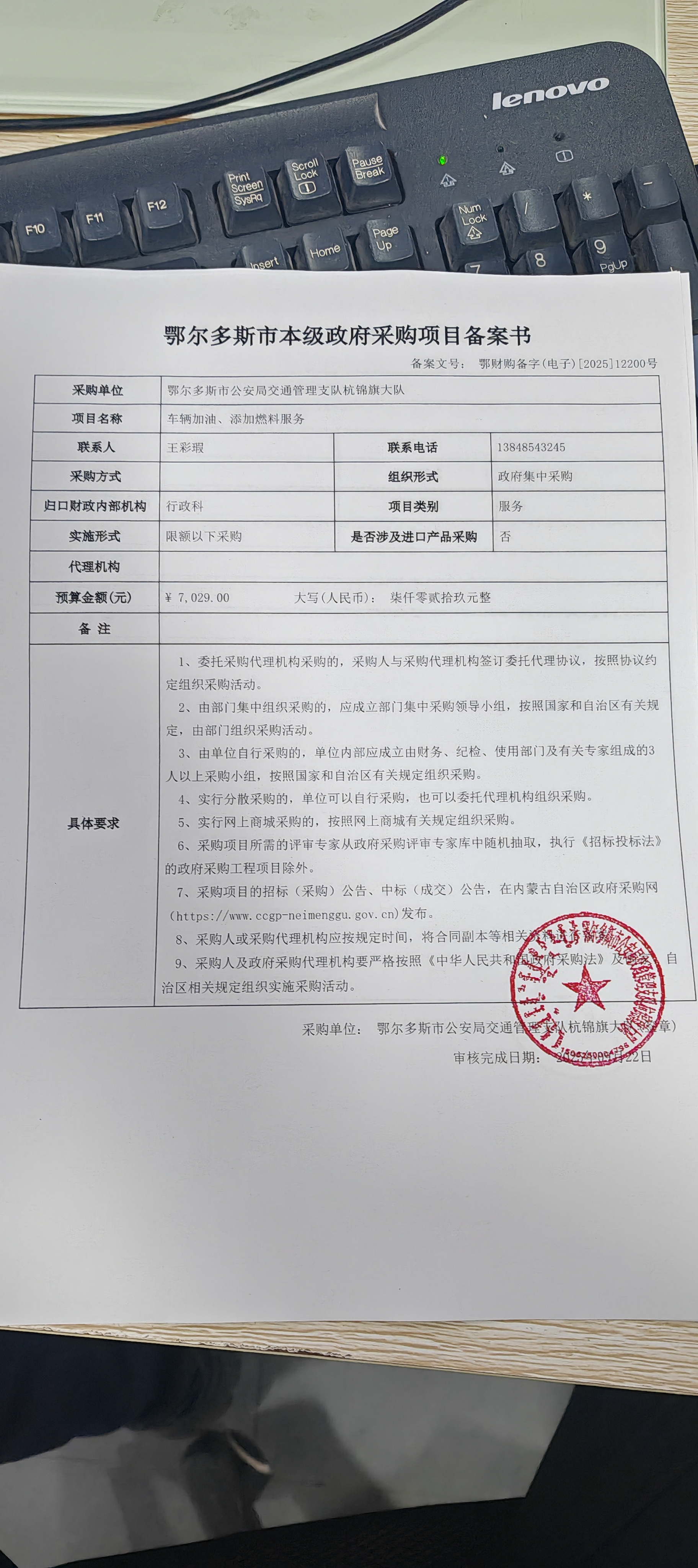 鄂尔多斯市公安局交通管理支队杭锦旗大队杭锦旗车辆加油服务政府采购合同公告