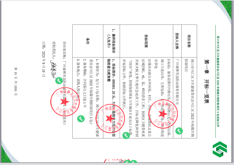 周口市川汇区卫生健康委员会川汇区2025年病媒生物防制项目-中标公告