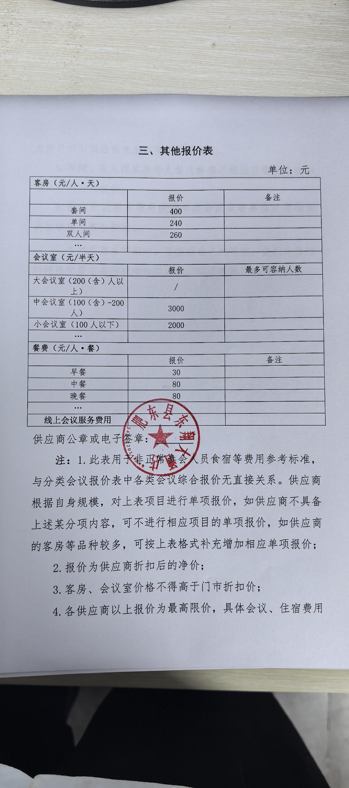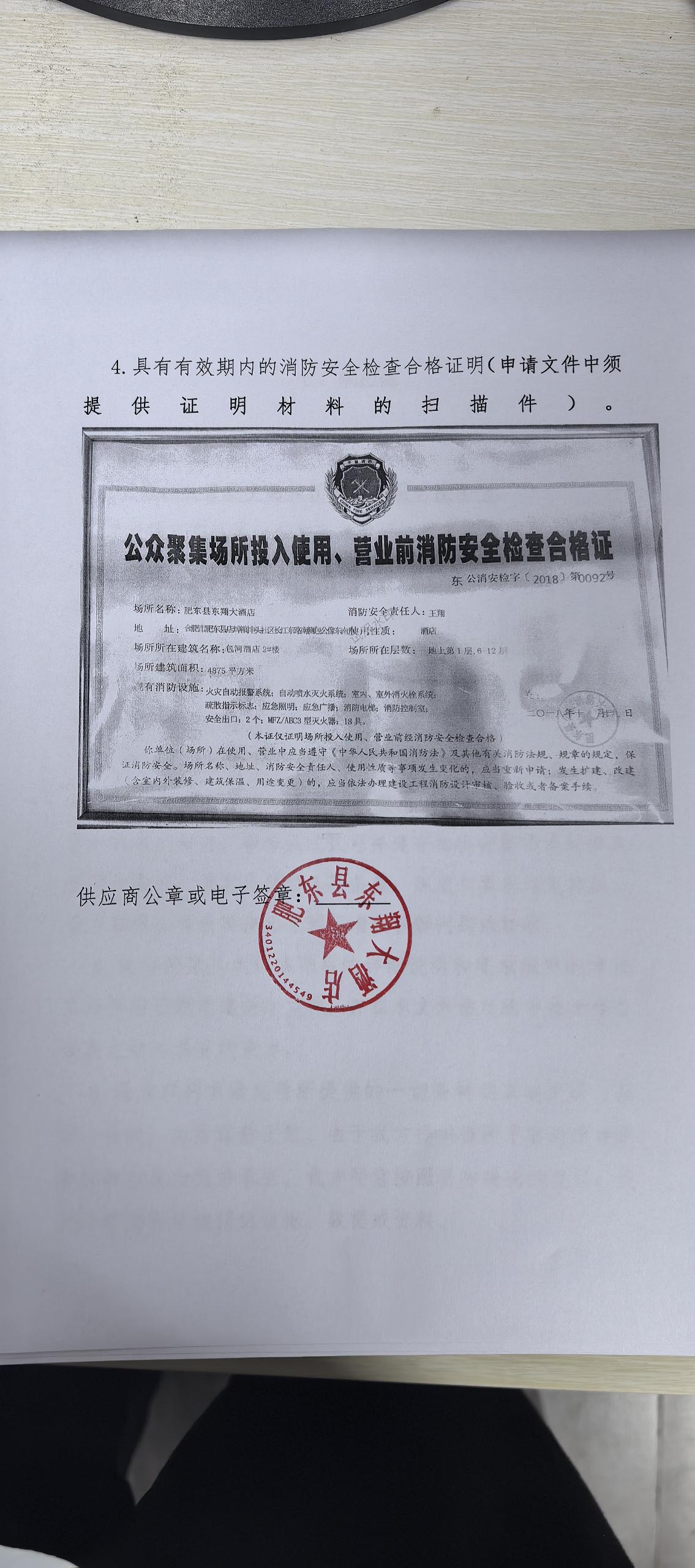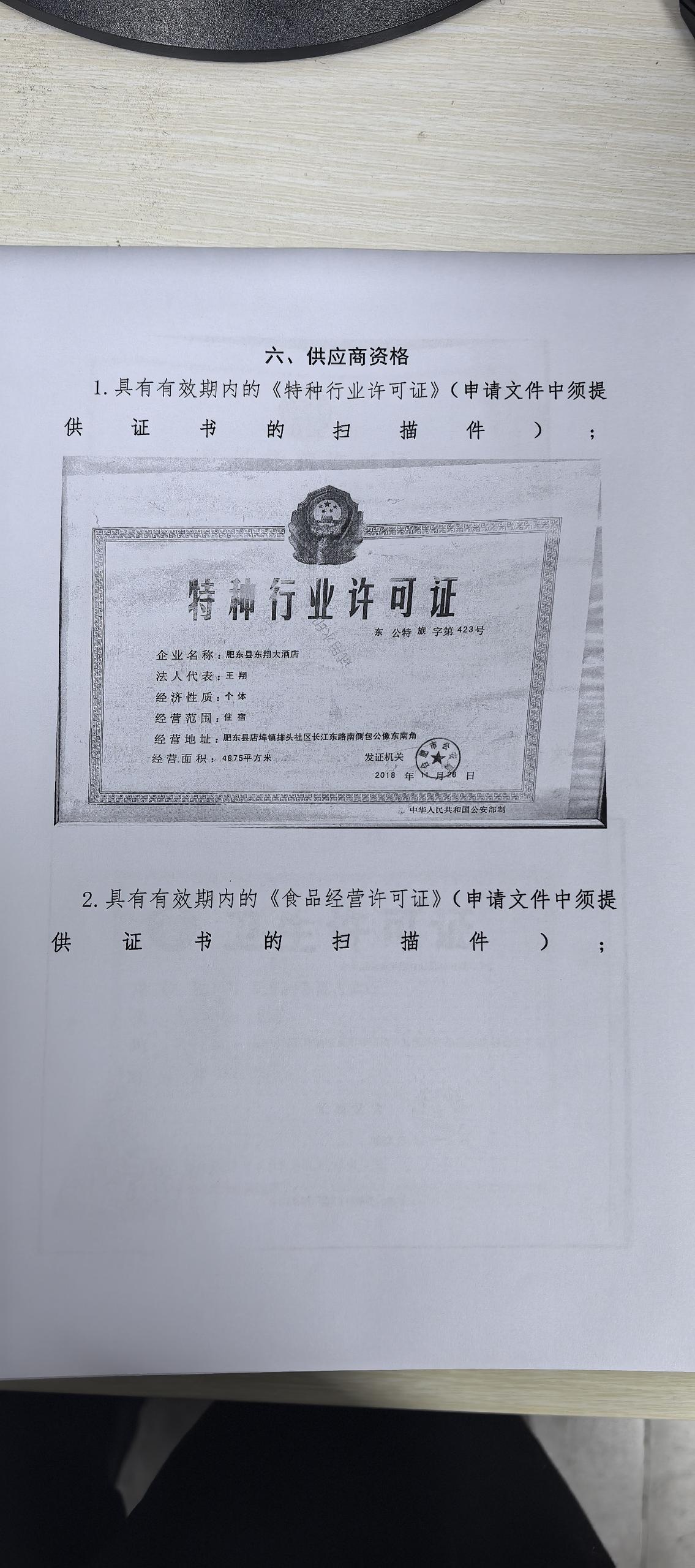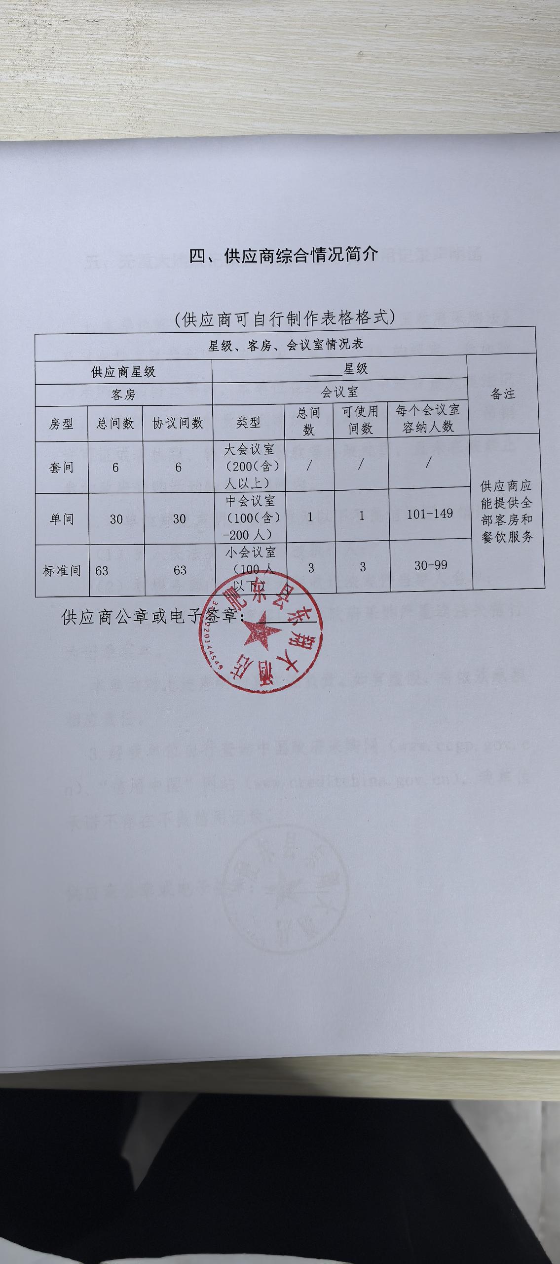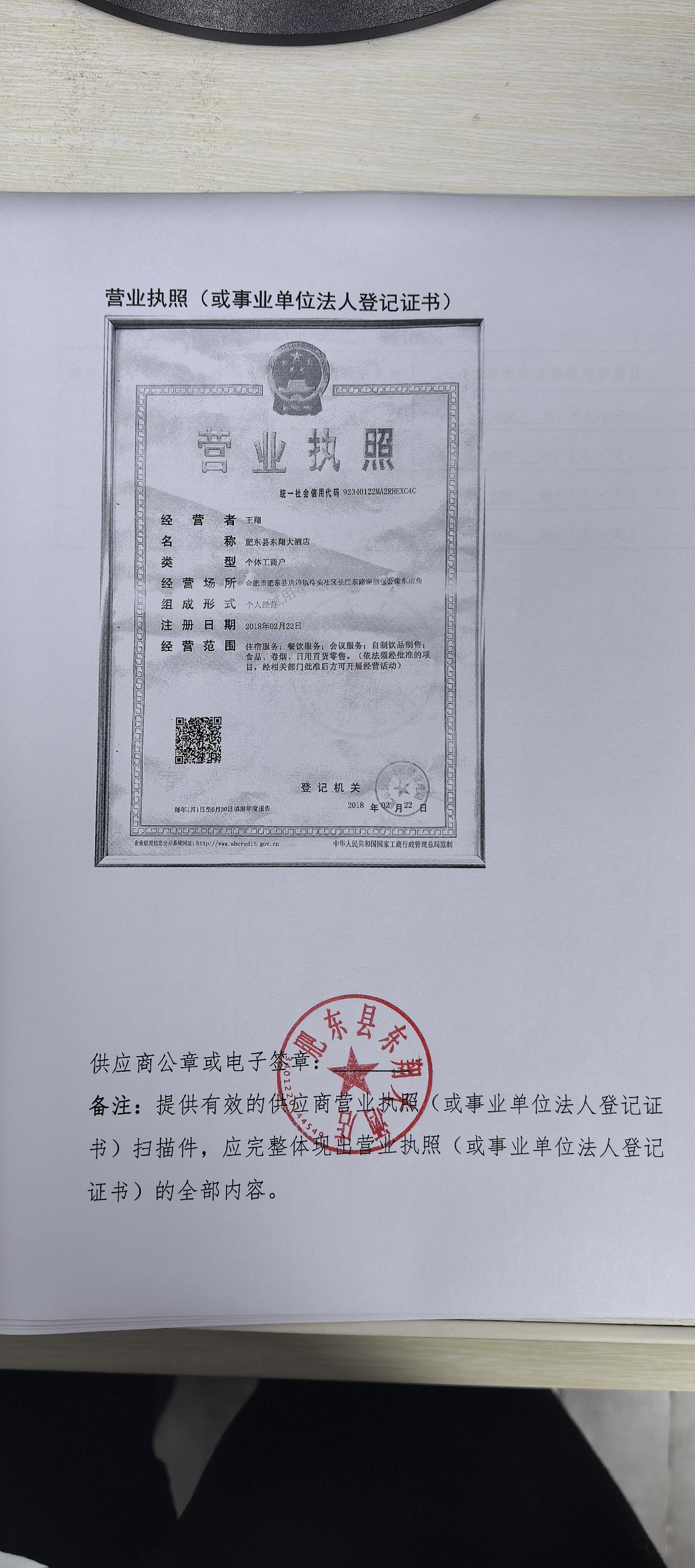 供应商名称:肥东县东翔大酒店