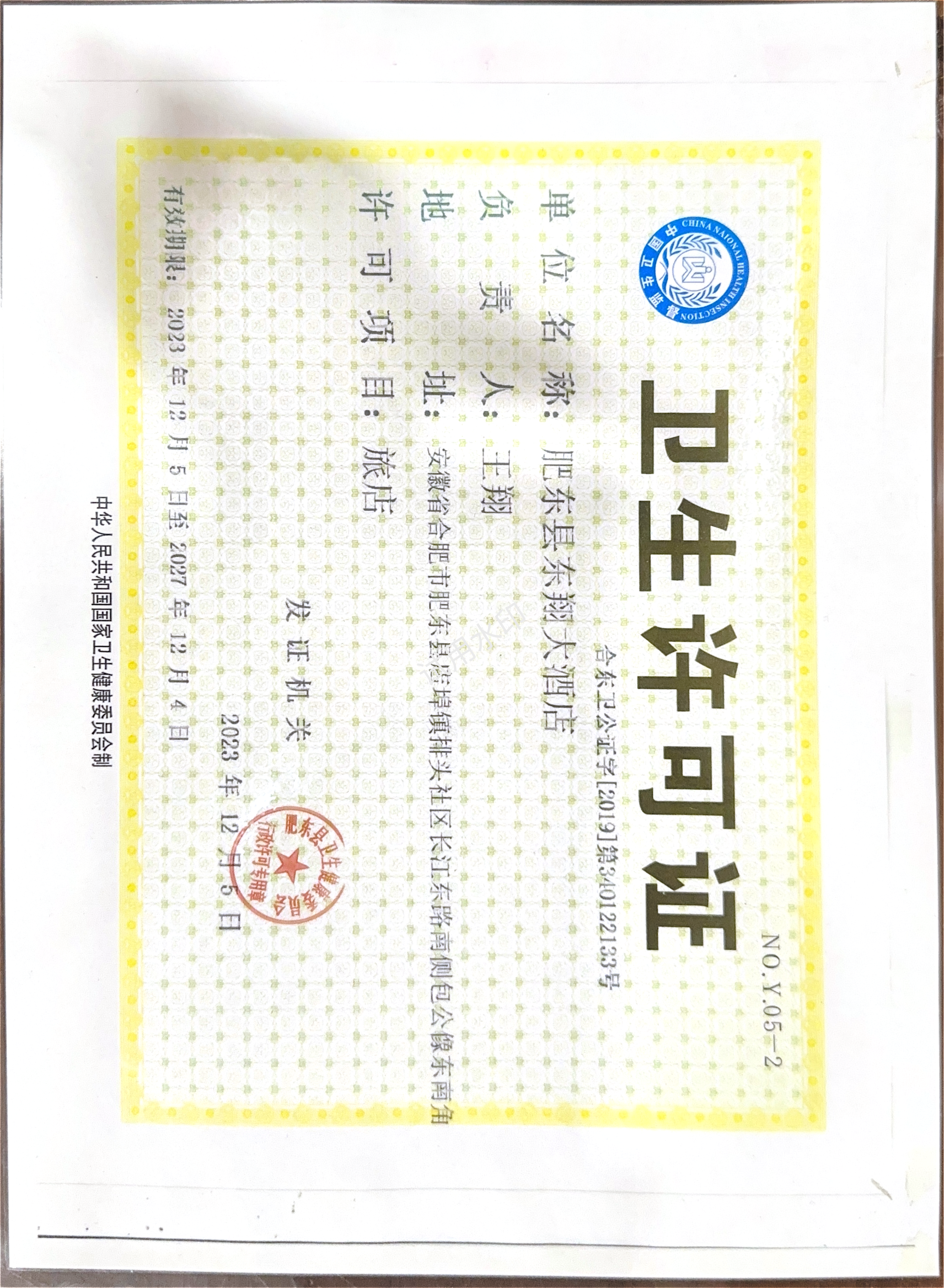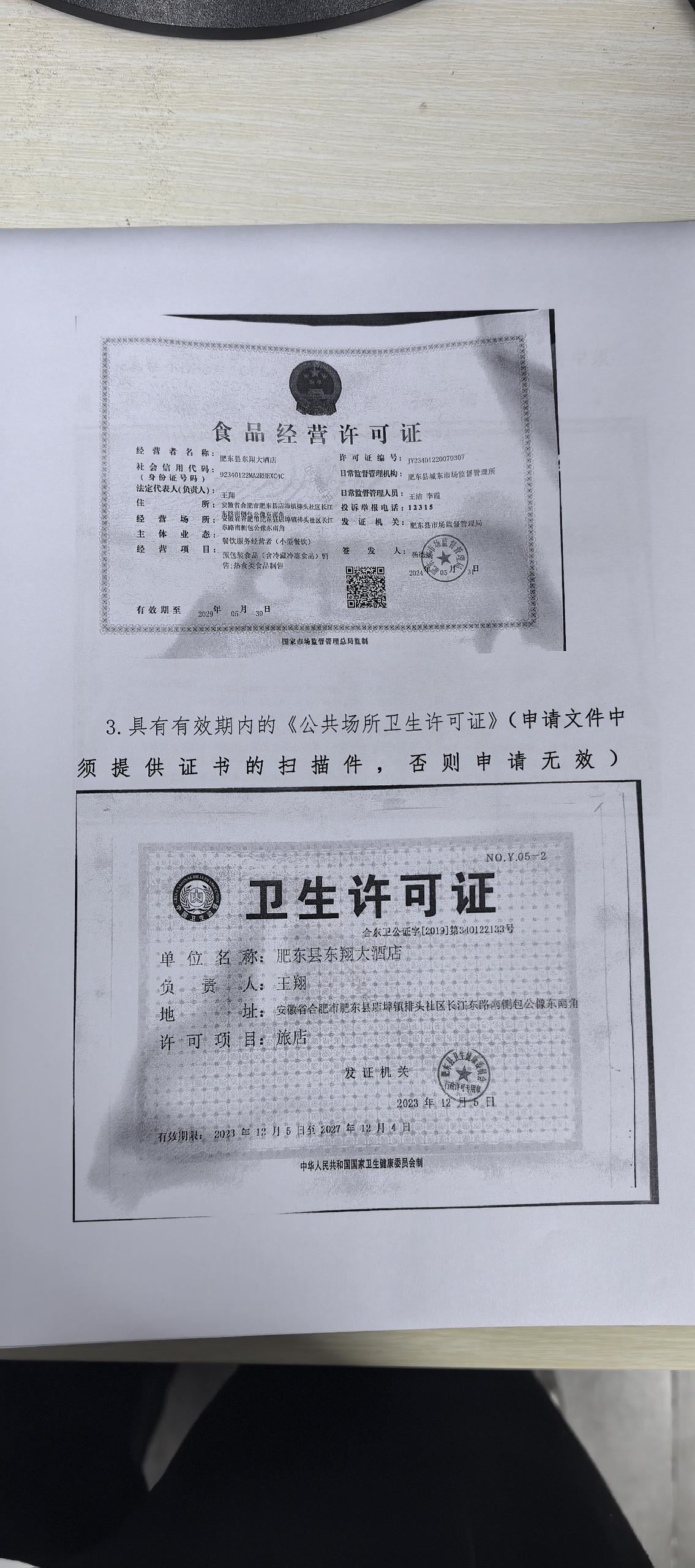 有效期内的《公共场所卫生许可证》:卫生许可证***.***