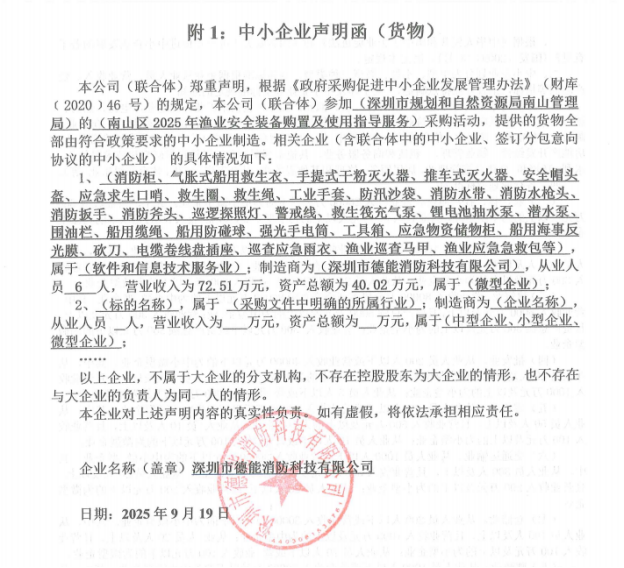 *.供应商名称:深圳市德能消防科技有限公司