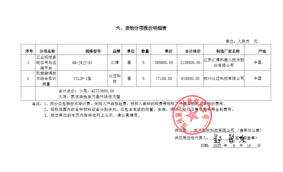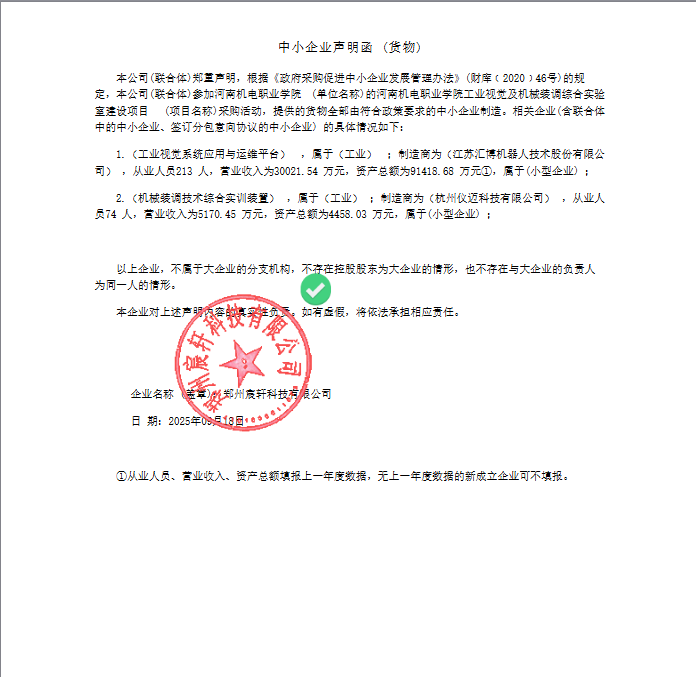 河南机电职业学院工业视觉及机械装调综合实验室建设项目-成交公告
