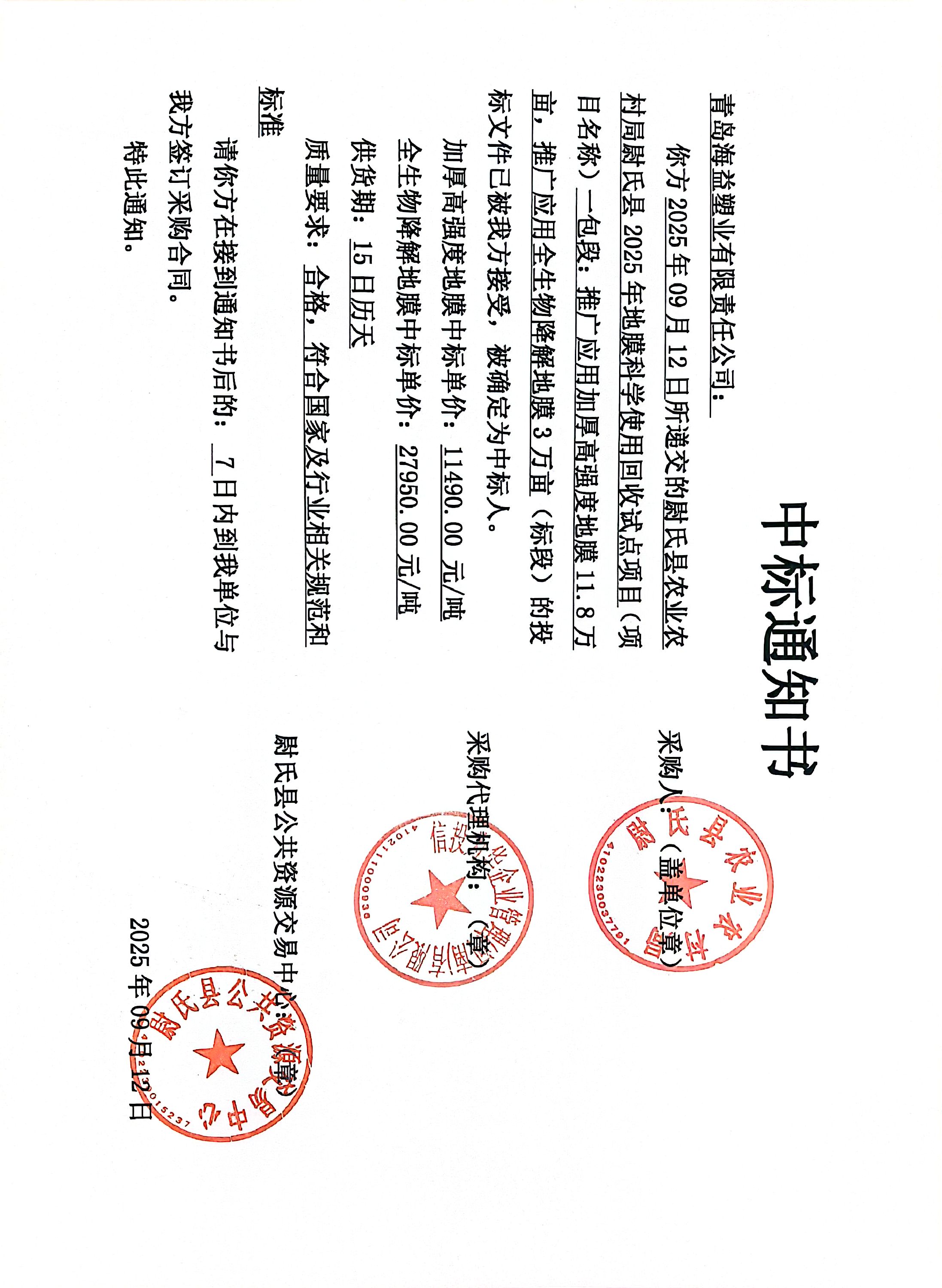 尉氏县农业农村局尉氏县2025年地膜科学使用回收试点项目