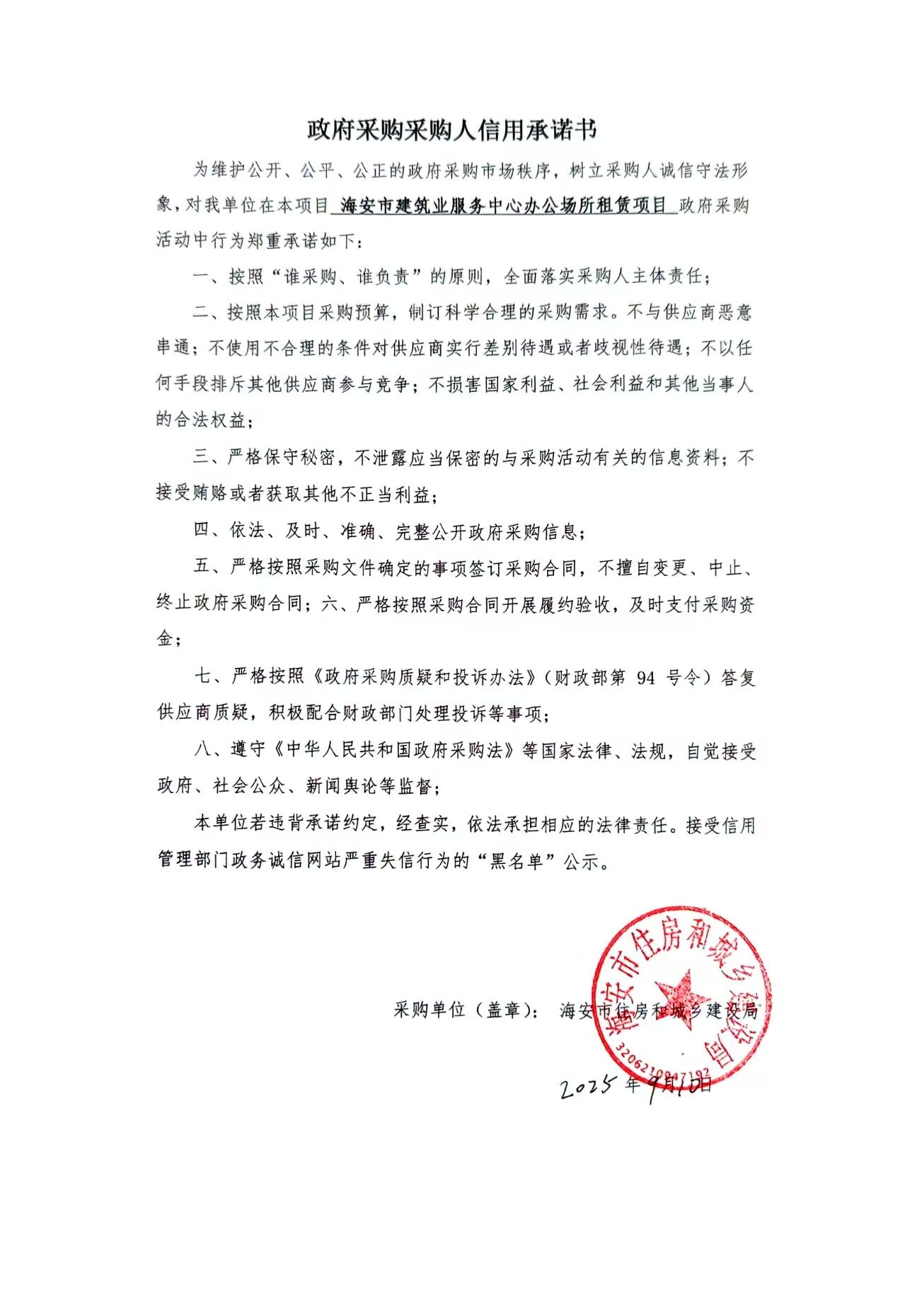海安市住房和城乡建设局(机关)海安市建筑业服务中心办公场所租赁项目单一来源采购公示