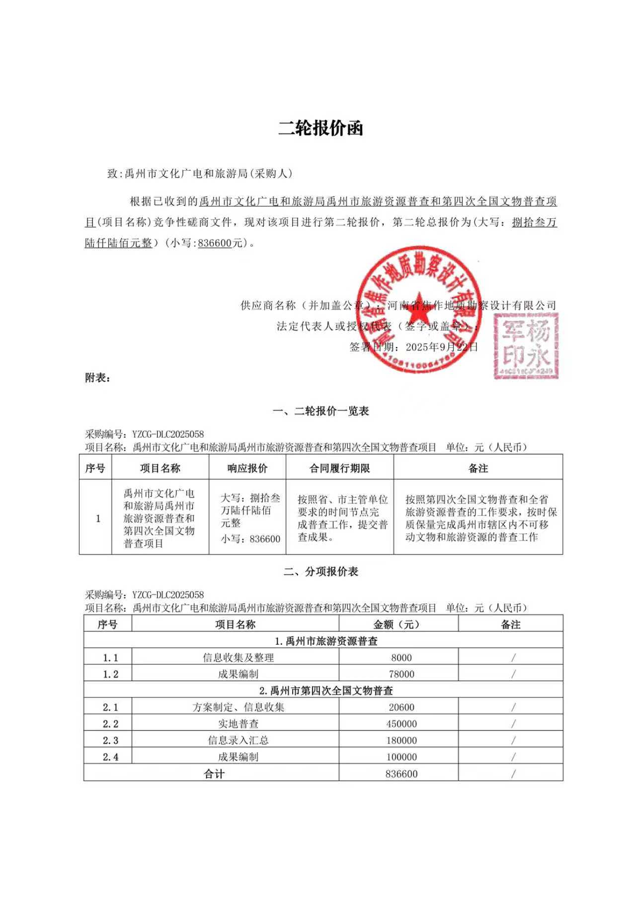 YZCG-DLC2025058禹州市文化广电和旅游局禹州市旅游资源普查和第四次全国文物普查项目成交公告