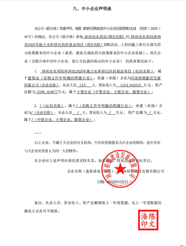林州市水利局林州市2025年地方水库移民扶持基金项目-中标公告