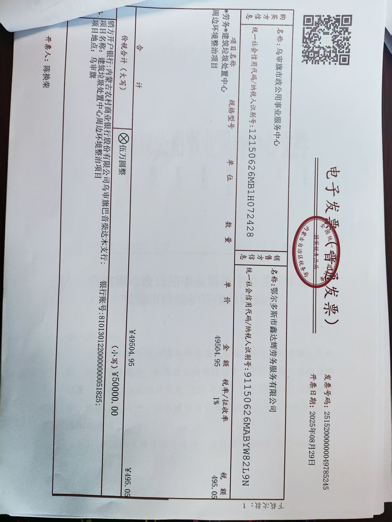 乌审旗市政公用事业服务中心2025年嘎鲁图镇农村牧区生活垃圾收运处理一体化燃油费⑧政府采购合同公告