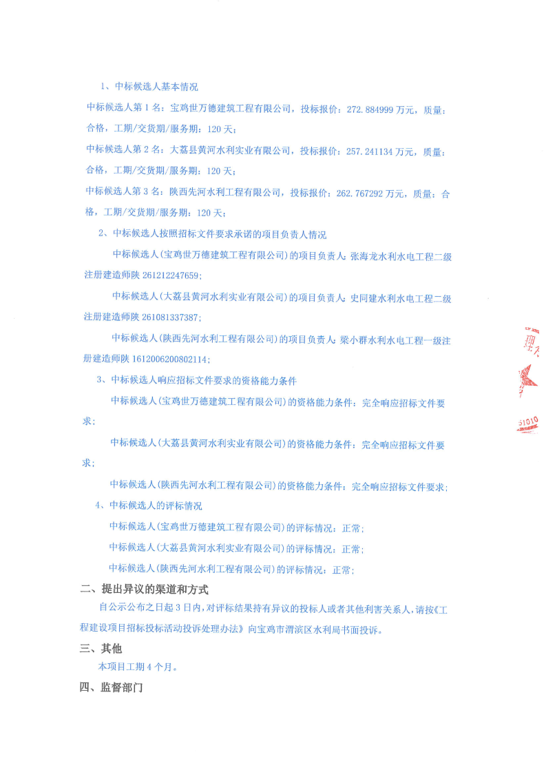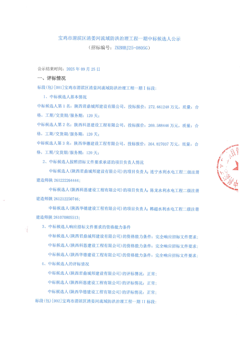 河流域防洪治理工程一期中标候选人公示