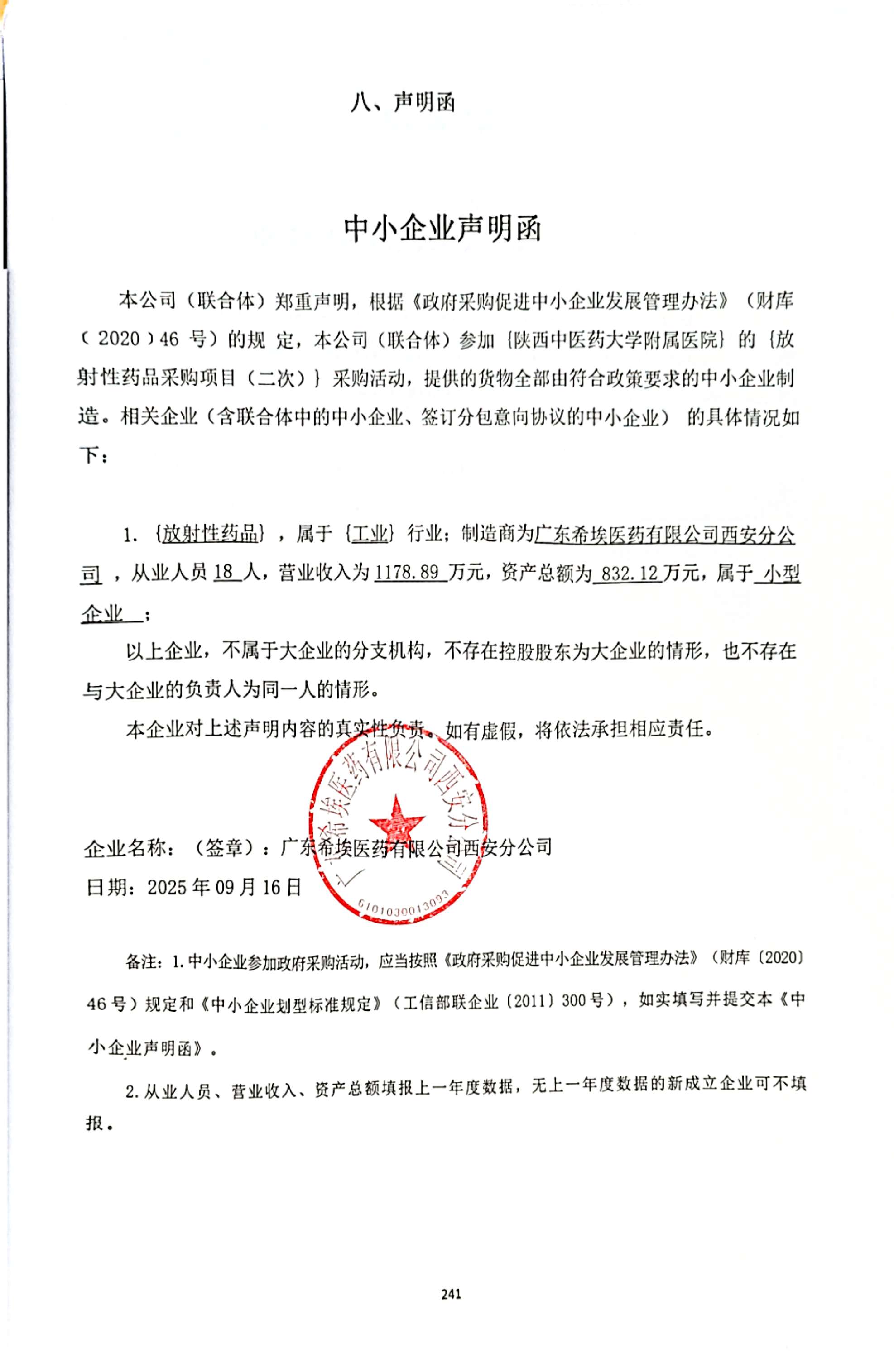 陕西中医药大学附属医院放射性药品采购项目(二次)中标(成交)结果公告