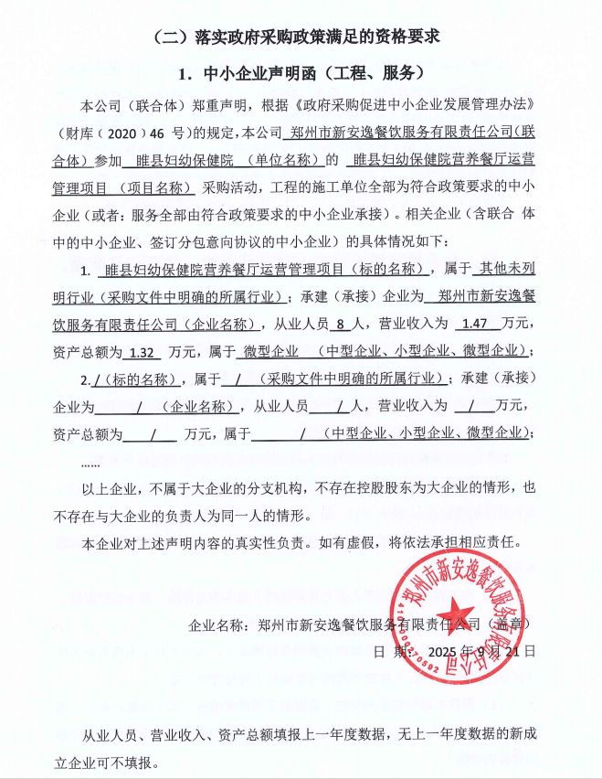 | *、采购项目名称:睢县妇幼保健院营养餐厅运营管理项目 | |||||||||||||||||||||||||||||||