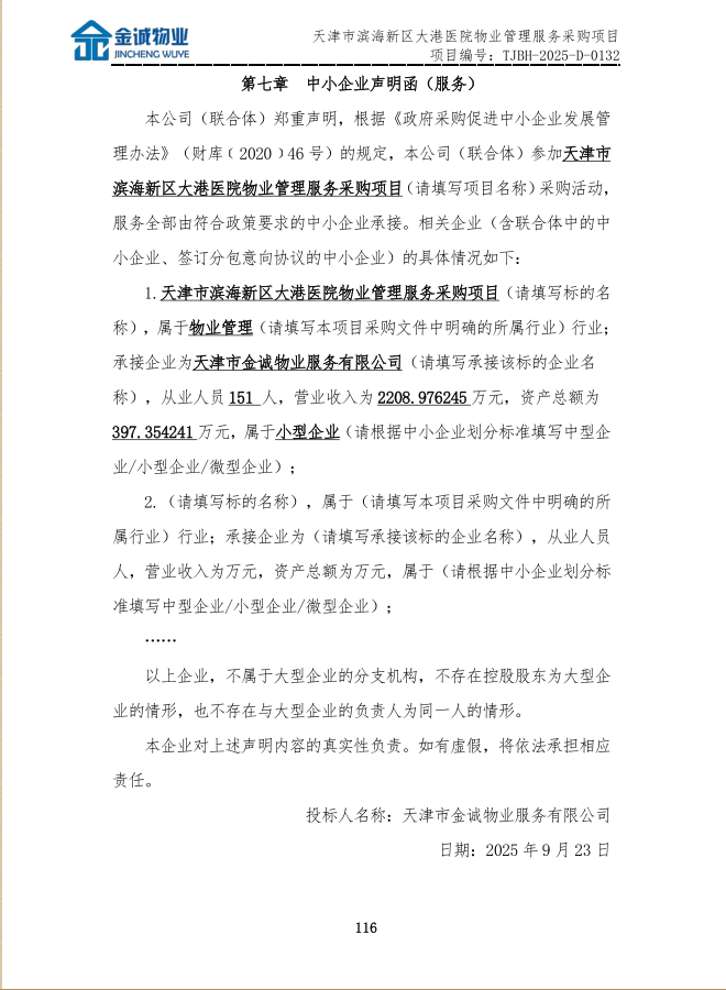 天津市滨海新区大港医院物业管理服务采购项目(项目编号:TJBH-20...