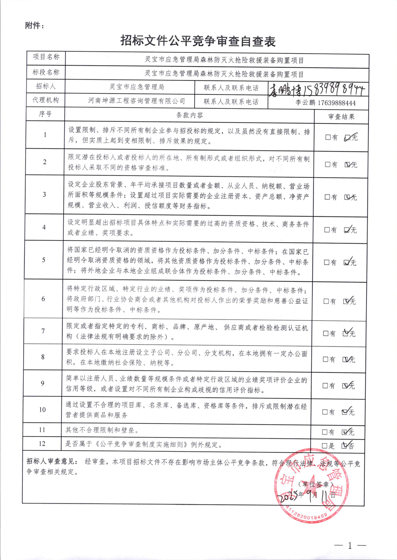 | *、项目名称:灵宝市应急管理局森林防灭火抢险救援装备购置项目 | |||||||||||