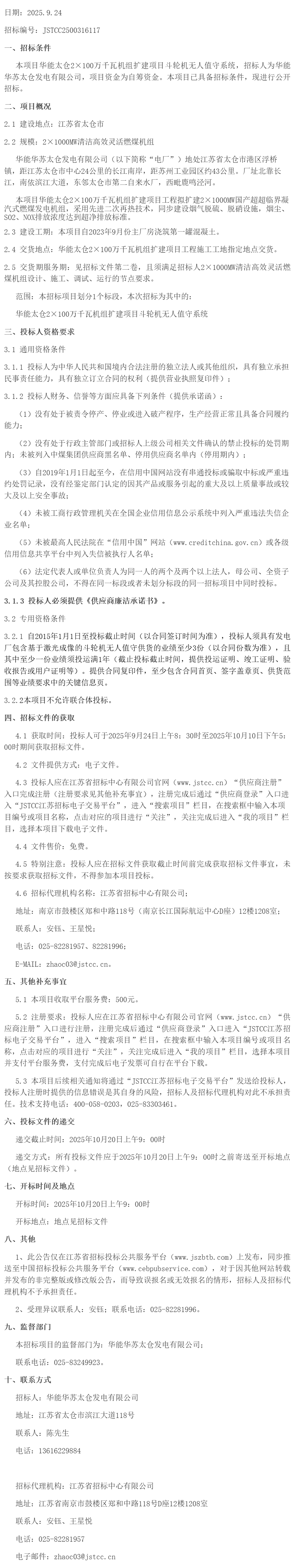 华能太仓*×***万千瓦机组扩建项目斗轮机无人值守系统招标公告(***************)