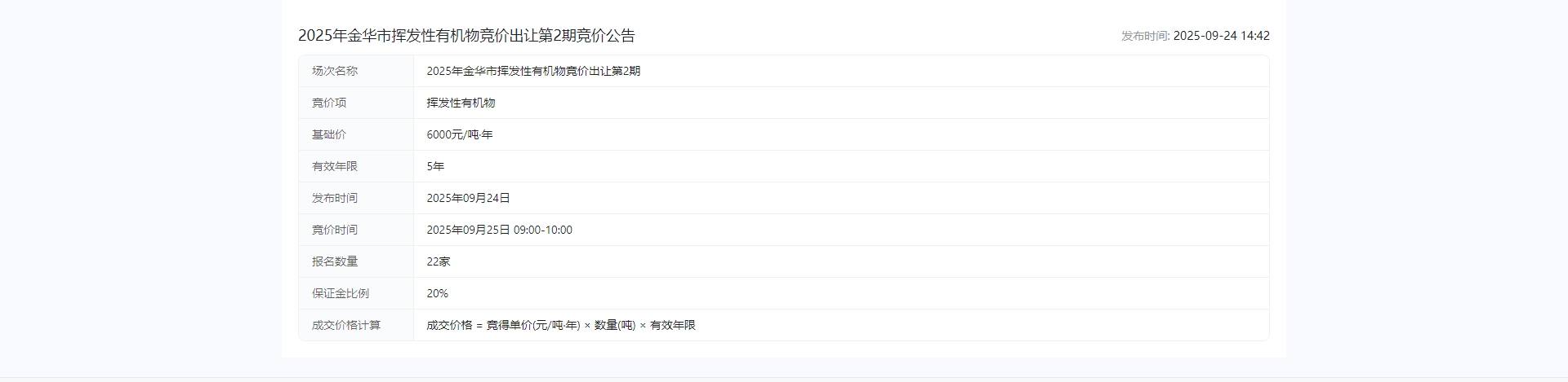 华市挥发性有机物竞价出让第2期竞价公告