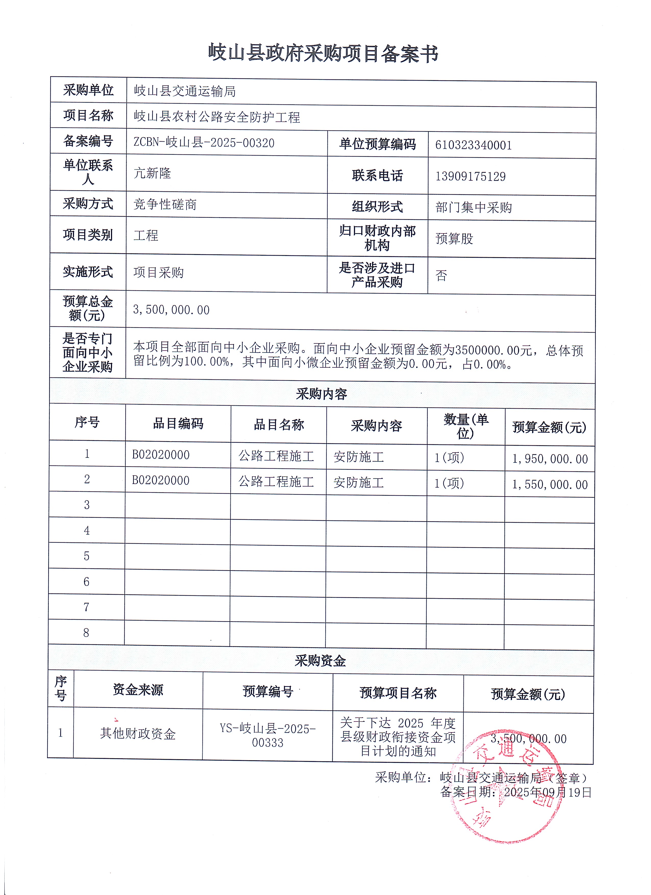 岐山县交通运输局岐山县农村公路安全防护工程竞争性磋商公告