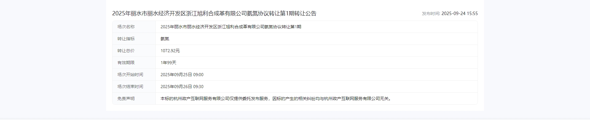 ****年丽水市丽水经济开发区浙江旭利合成革有限公司