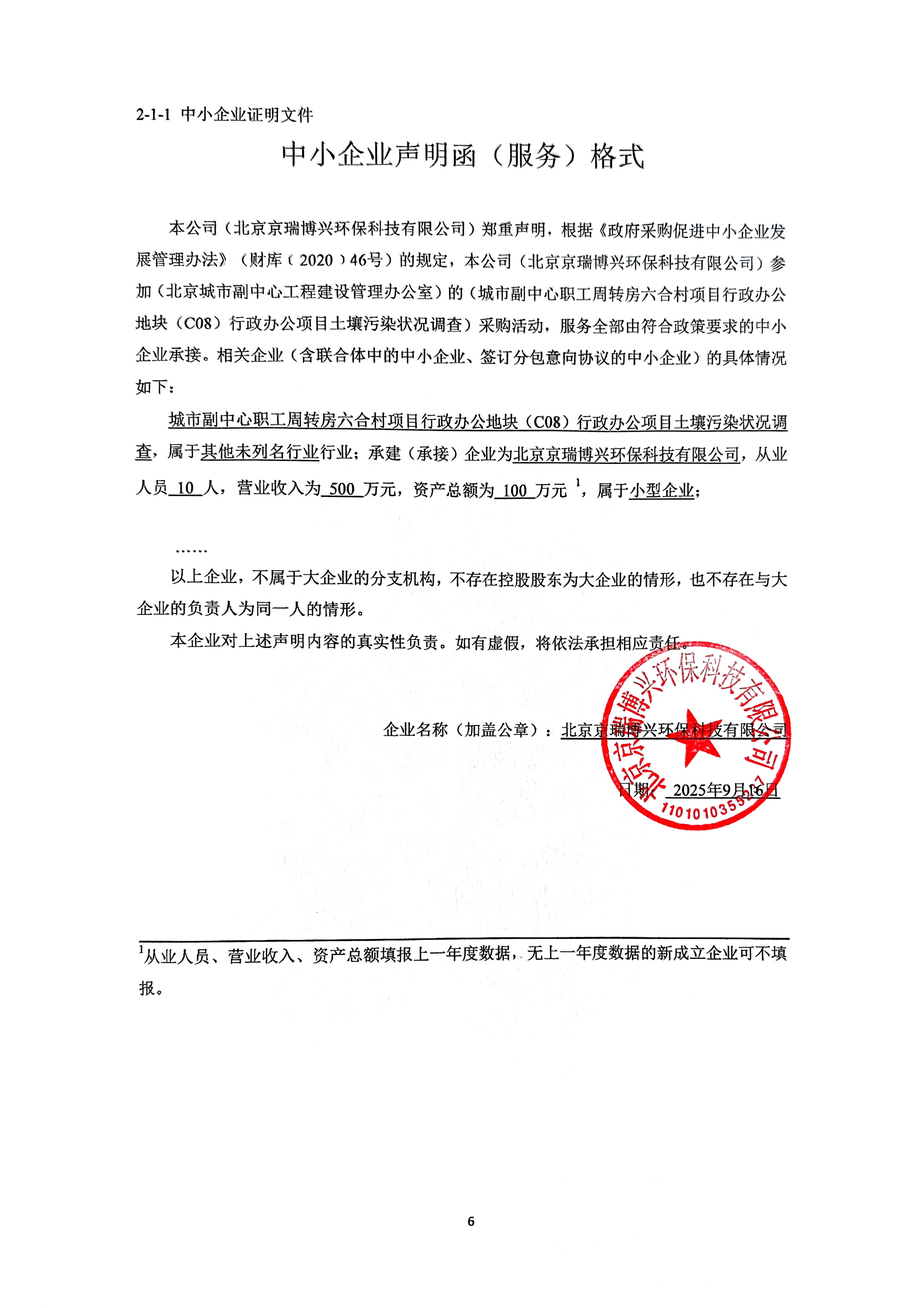 *简要技术要求:供应商应依据采购人提供的资料及要求,开展项目地块的调研工作,结合历史及现场踏勘情况编制项目土壤污染状况调查方案;依据方案开展土壤、地下水样品的采样和检测工作,并出具检测报告;提交正式《城市副中心职工周转房六合村项目行政办公地块(***)行政办公项目土壤污染状况调查报告》,并配合采购人通过评审,最终取得政府相关文件。