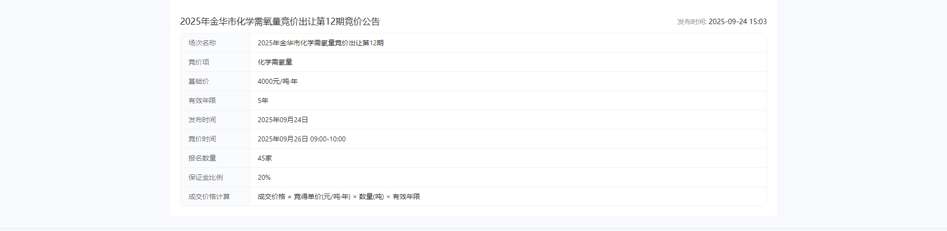华市化学需氧量竞价出让第12期竞价公告