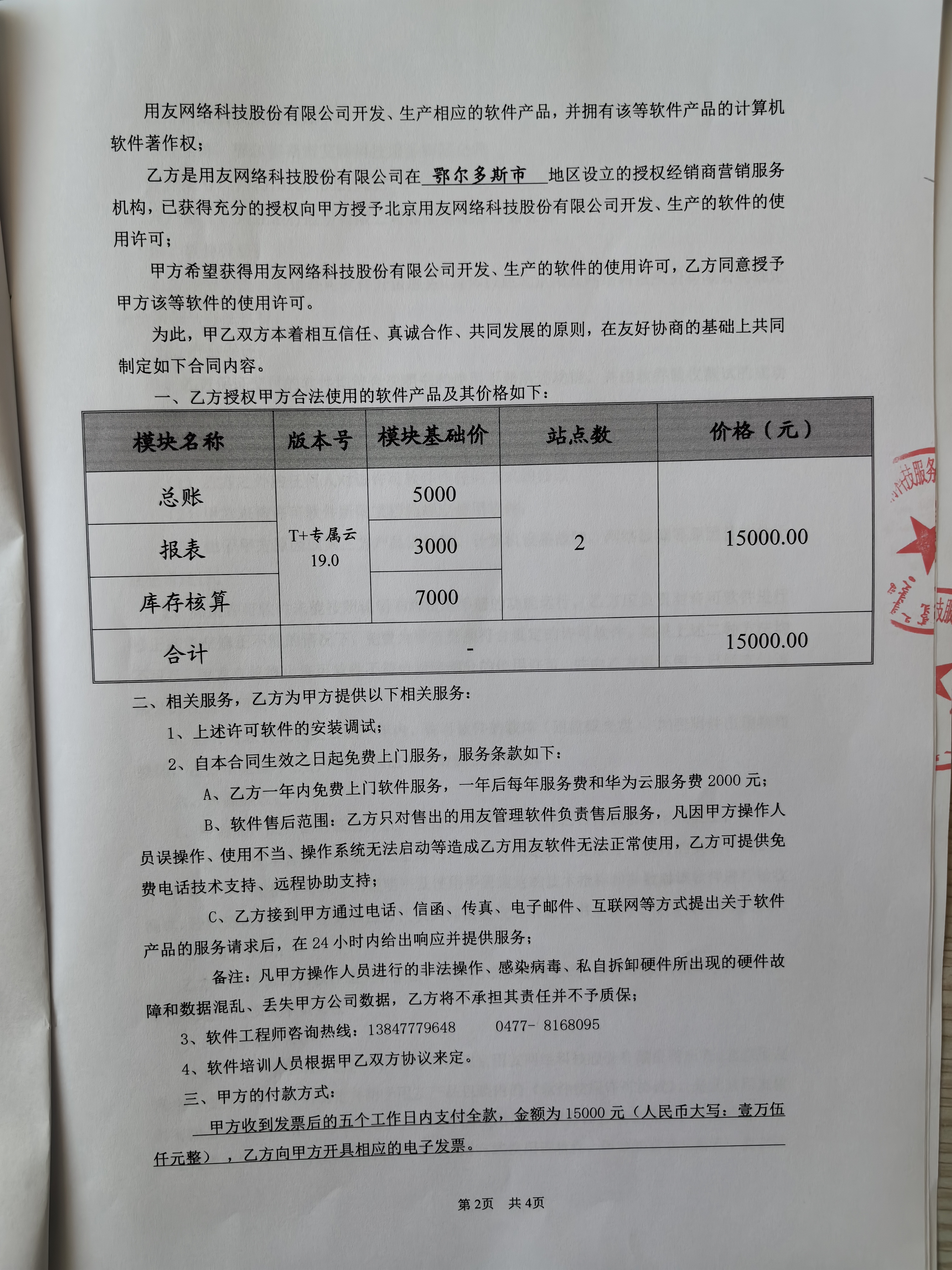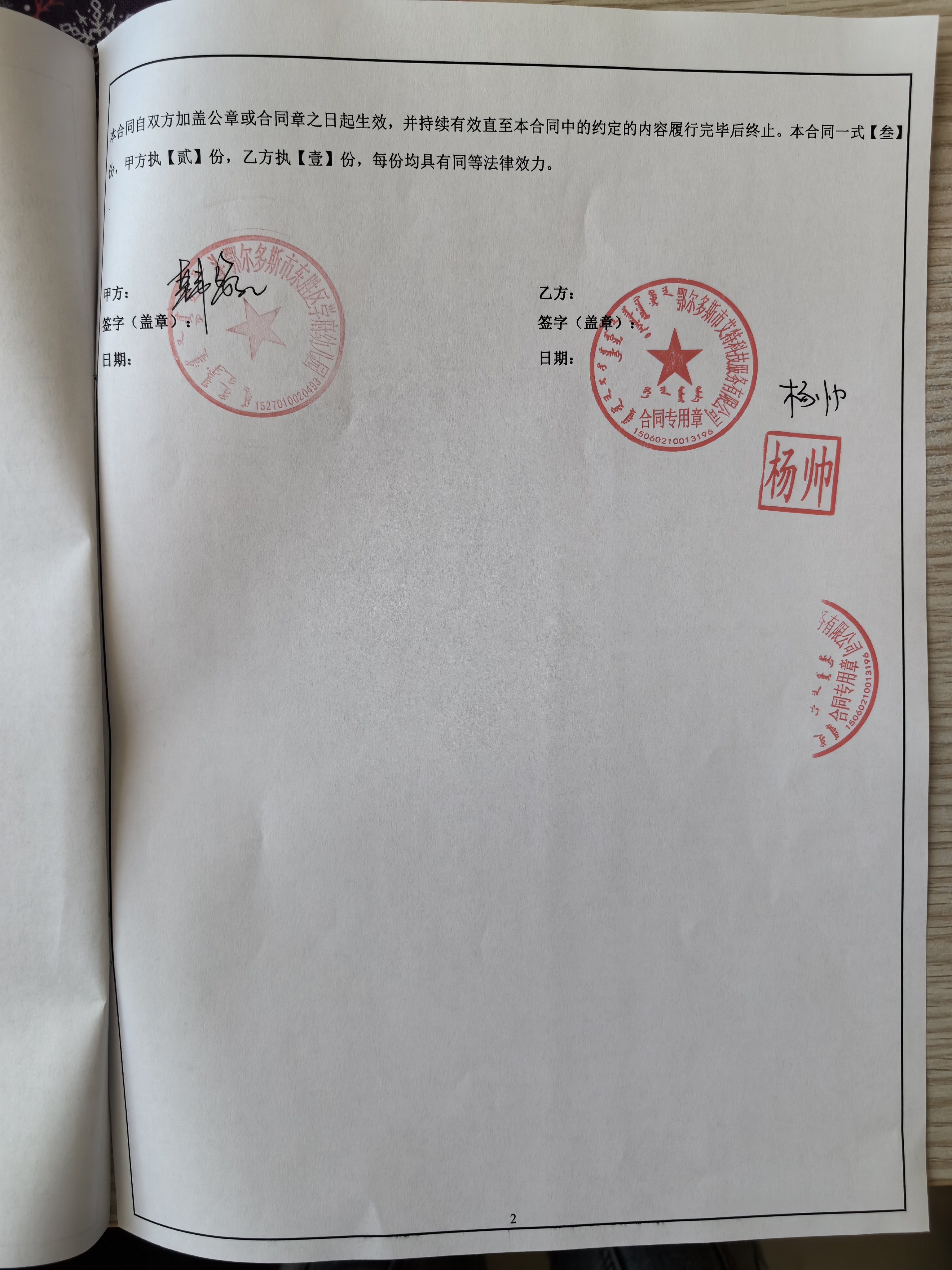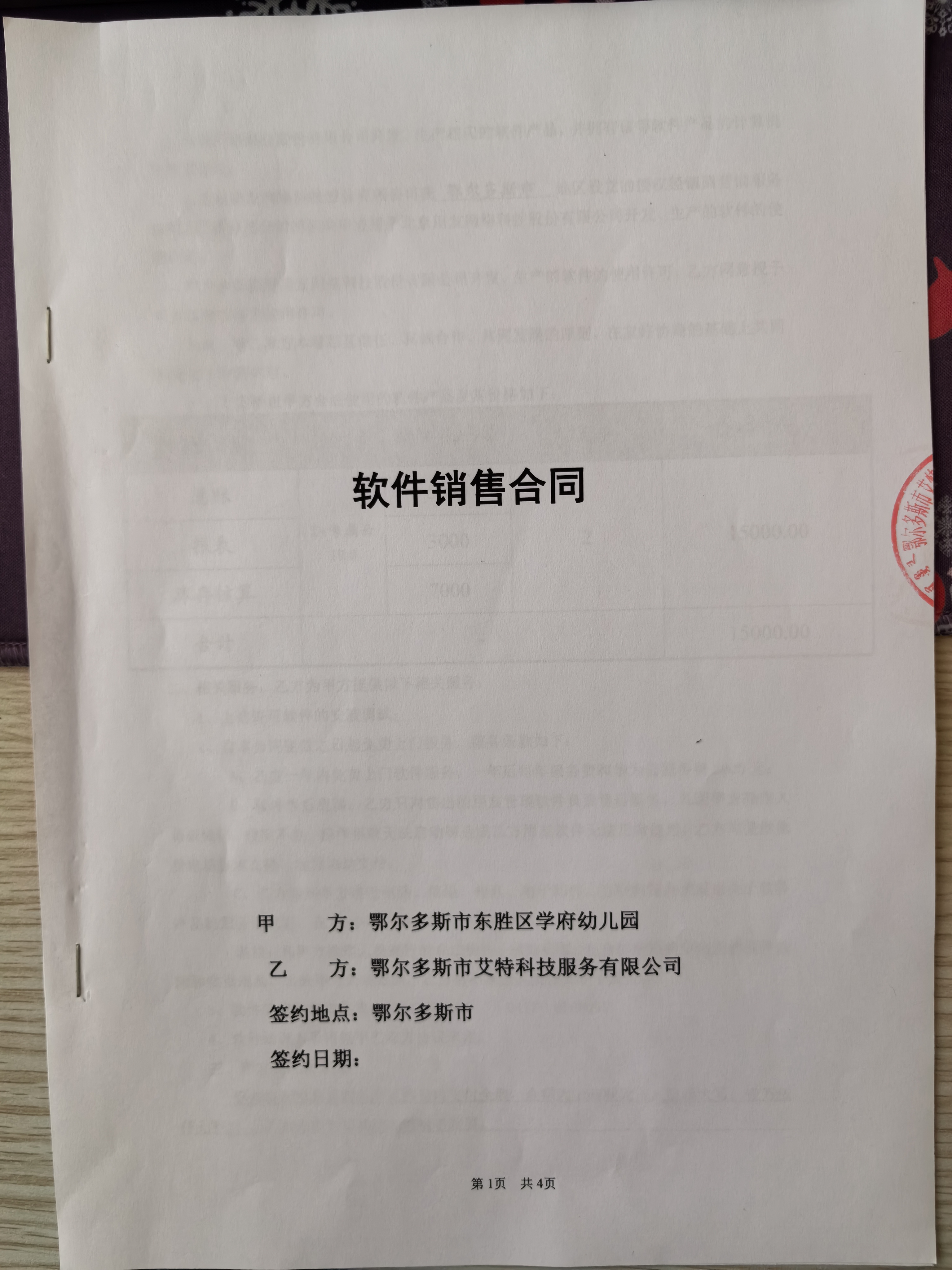 合同金额: **,***.**元,大写(人民币):壹万伍仟元整 履约期限:****年**月**日至****年**月**日 履约地点:东胜区学府幼儿园 采购方式: 七、合同签订日期****年**月**日 八、合同公告日期****年**月**日 九、其他补充事宜