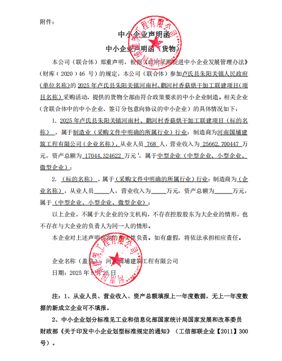 卢氏县朱阳关镇人民政府2025年卢氏县朱阳关镇河南村、鹳河村香菇烘干加工联建项目-成交公告