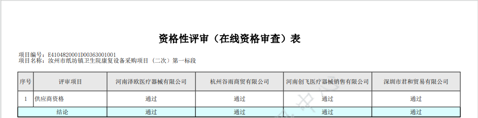 汝州市纸坊镇卫生院康复设备采购项目(二次)-中标公告
