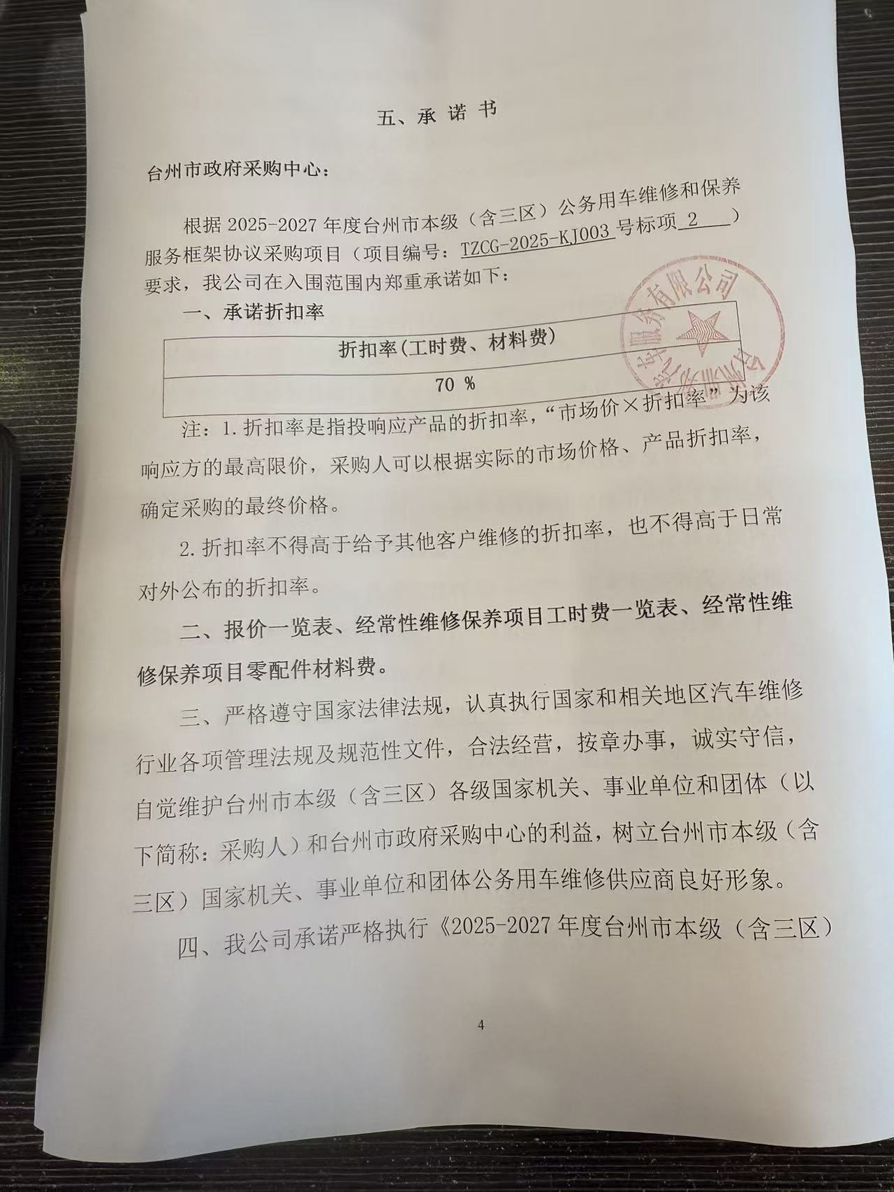 台州鼎邦汽车服务有限公司入围2025-2027年度台州市本级(含三区)公务用车维修和保养服务框架协议采购项目的结果公告